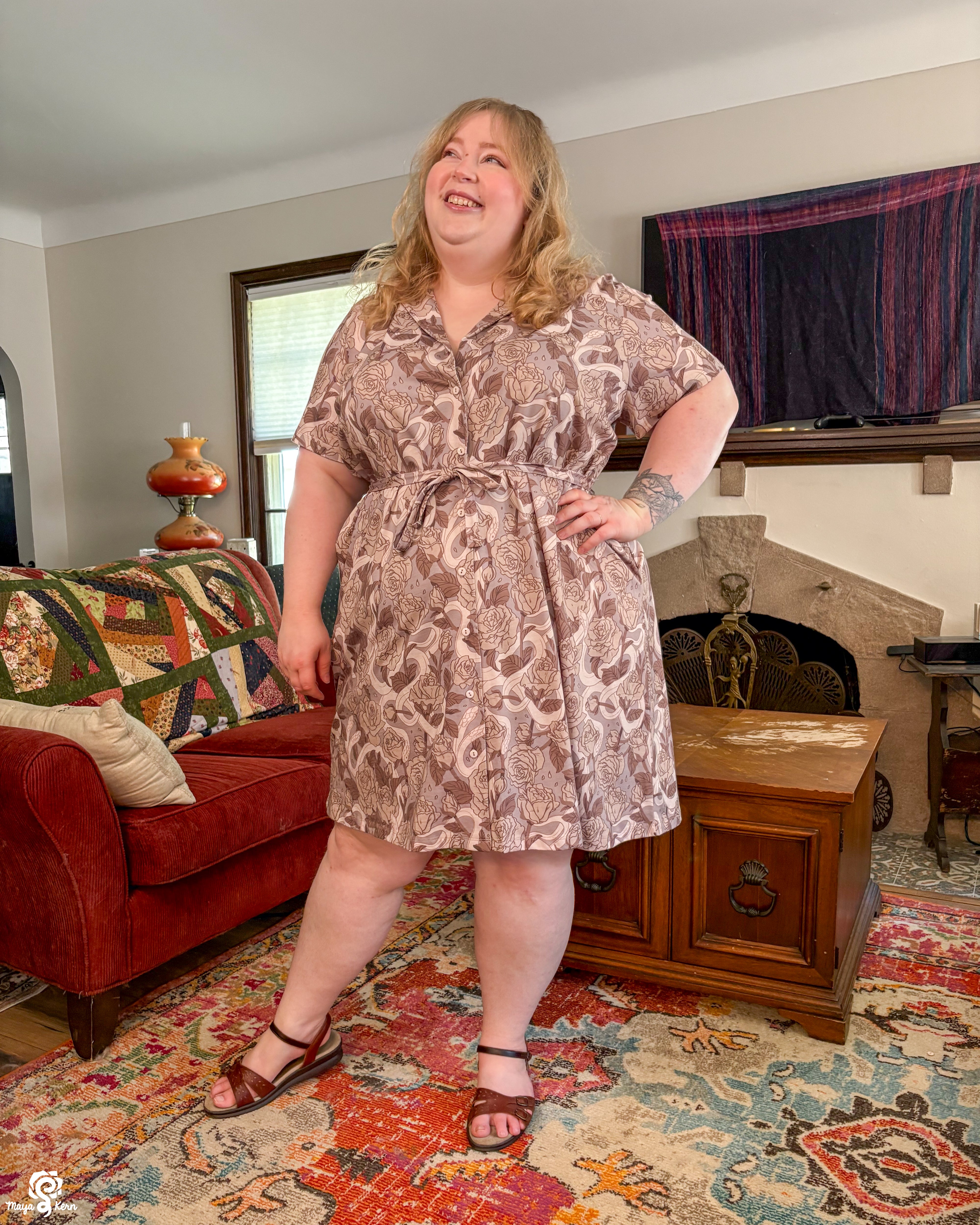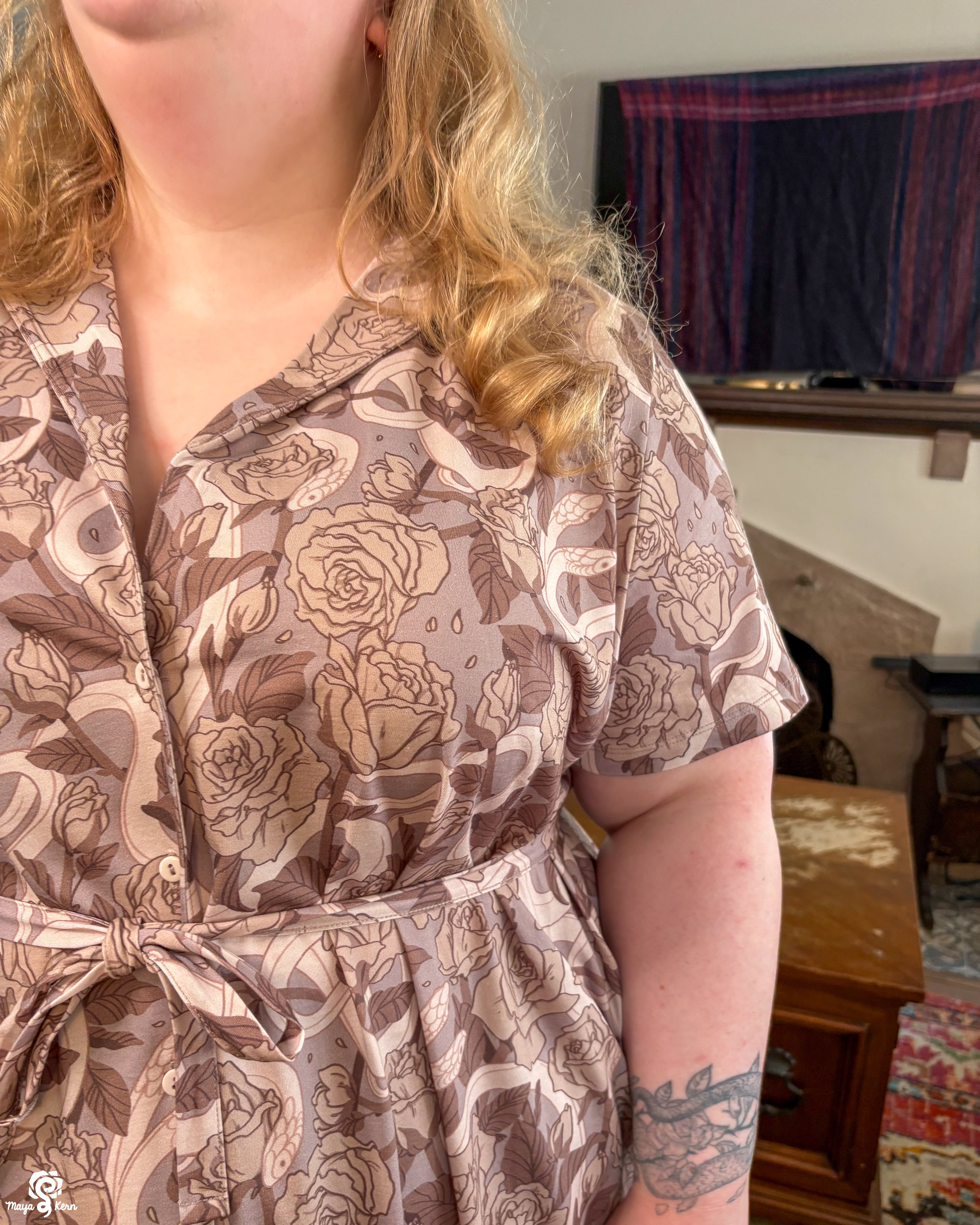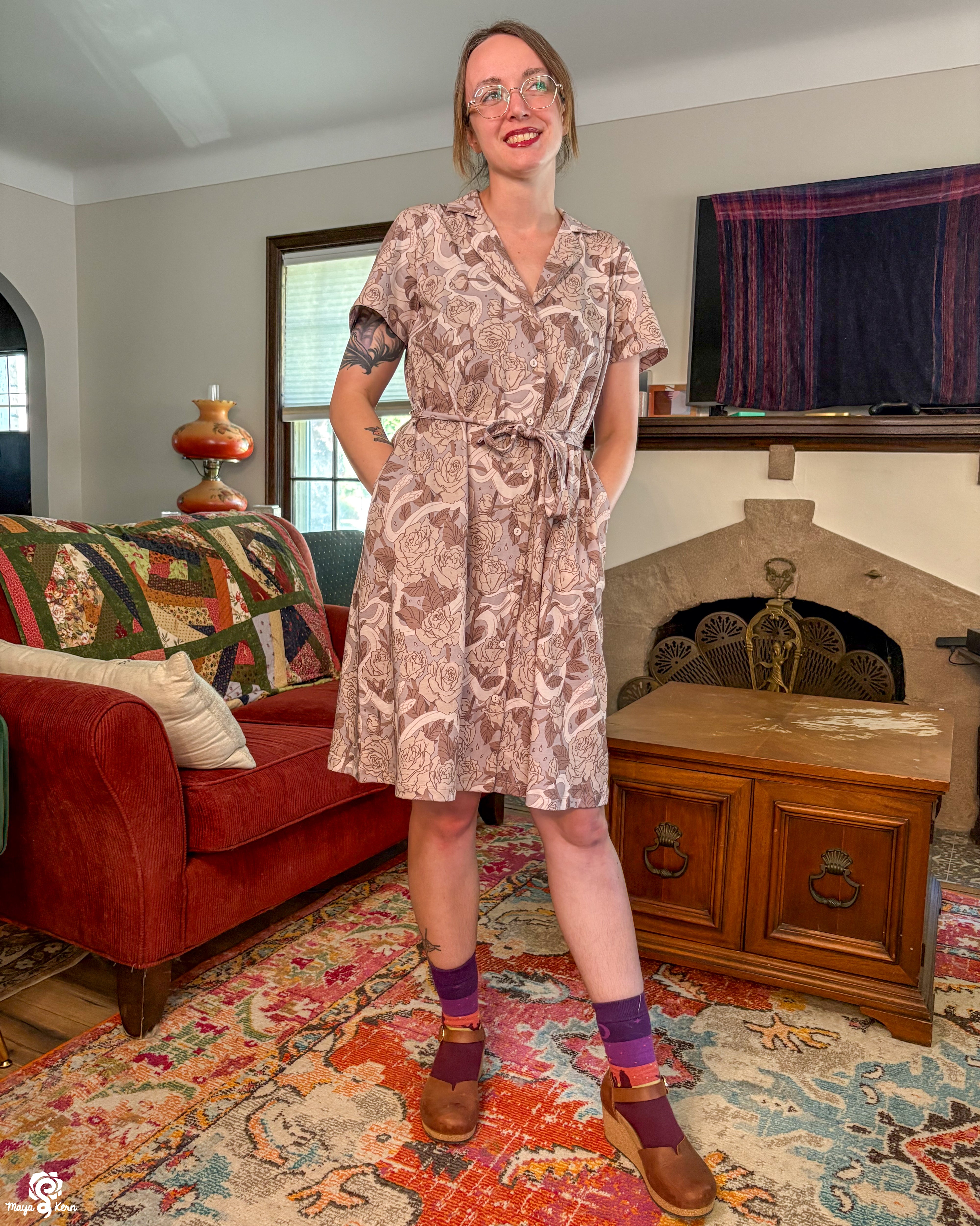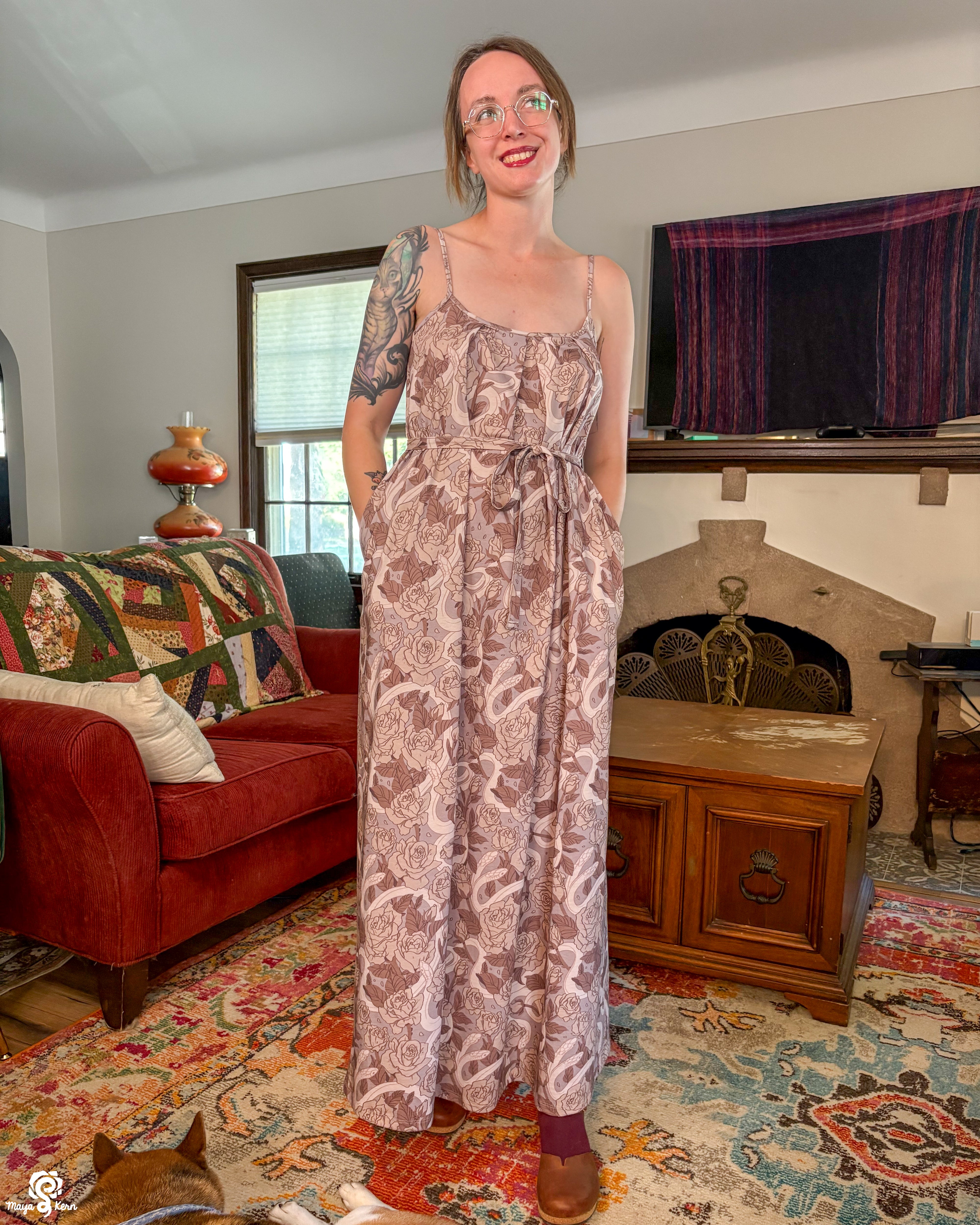 This was one of the first Maya skirts I've owned (I was lucky enough to order 3) and it is stretchy, light weight, comfy, has pockets big enough to fit my yeti, and it twirls really well even without a petticoat. Shattered Earth did an amazing job designing the silly squiggly kitties. They make me smile (: and I hope others smile when they see it too