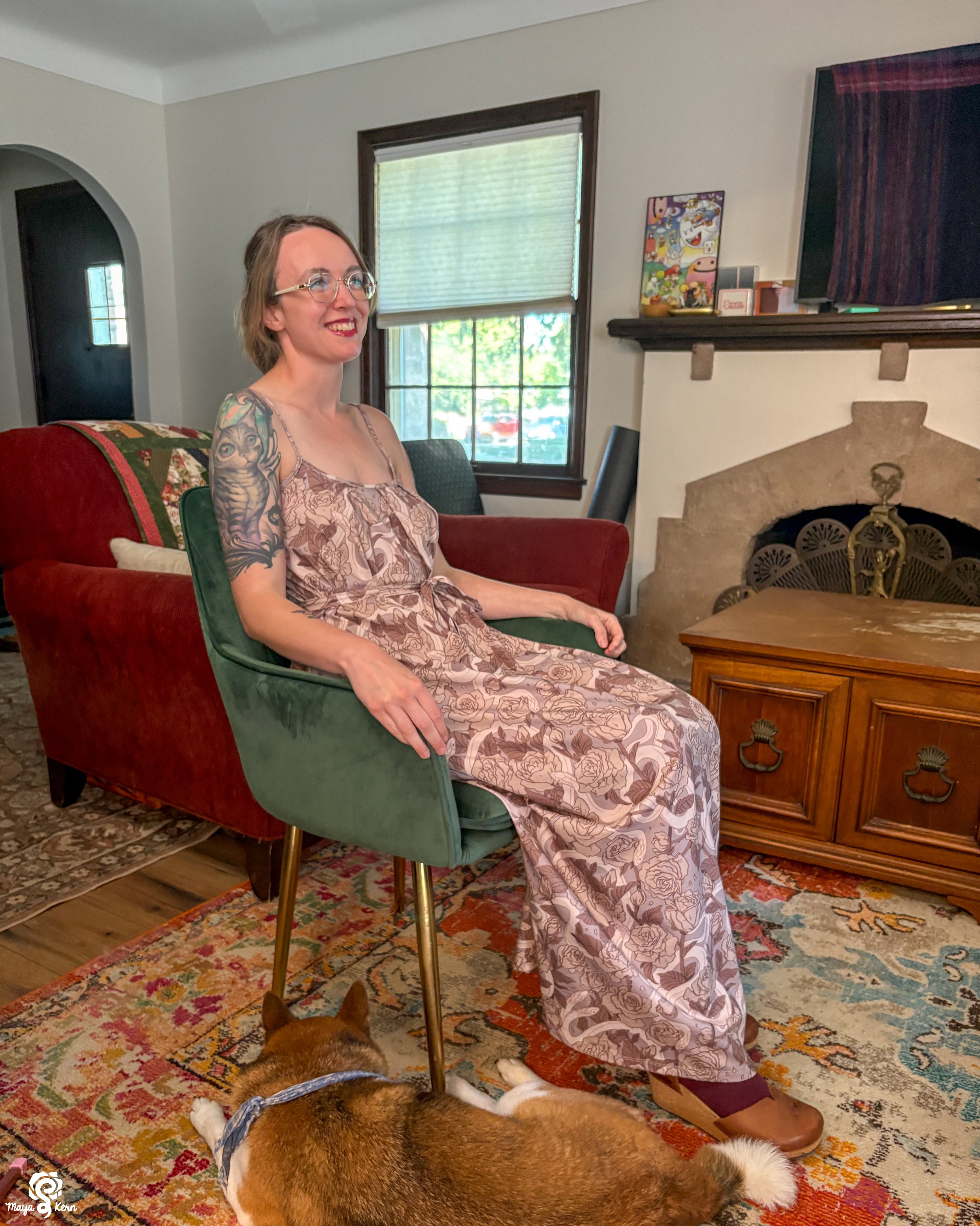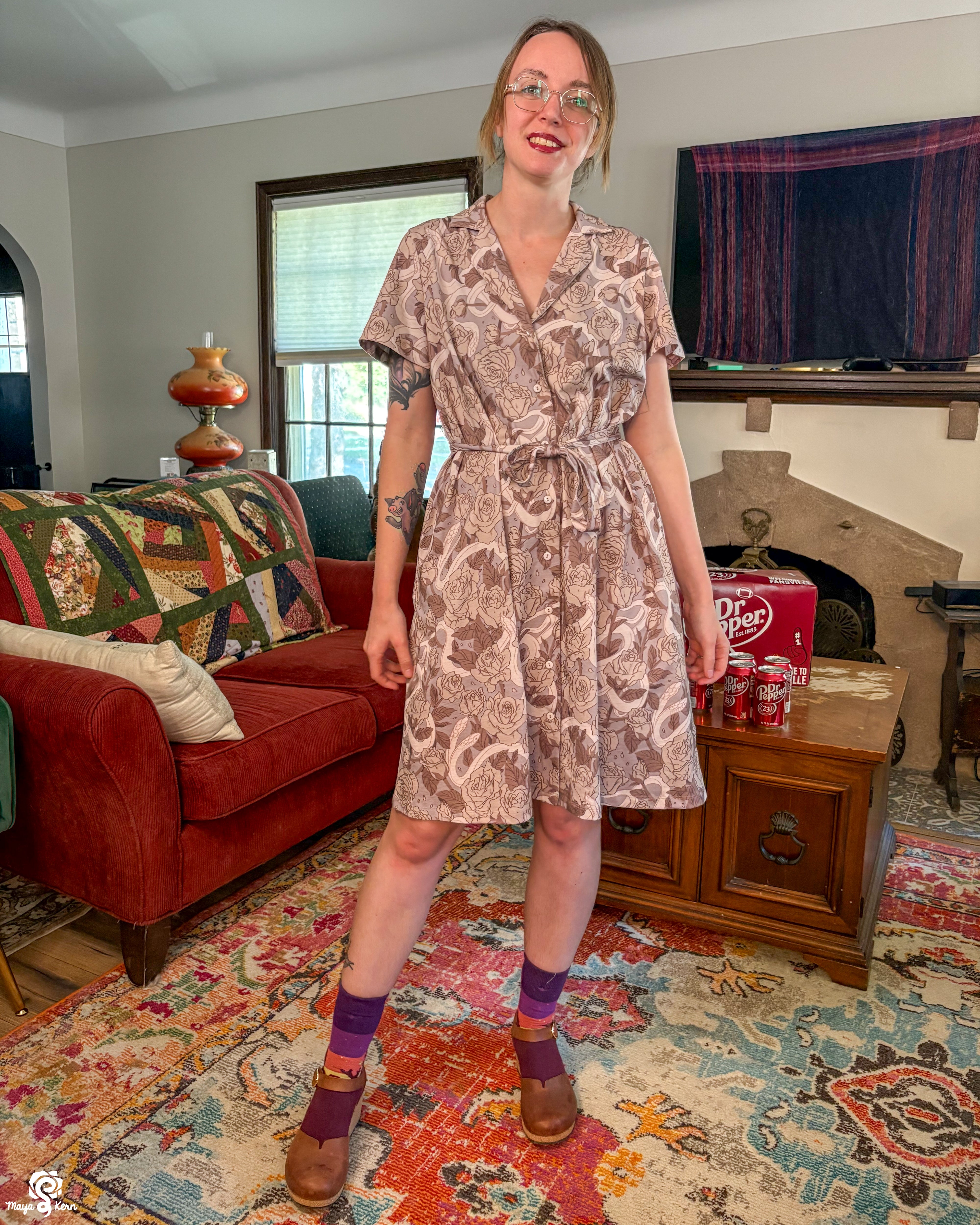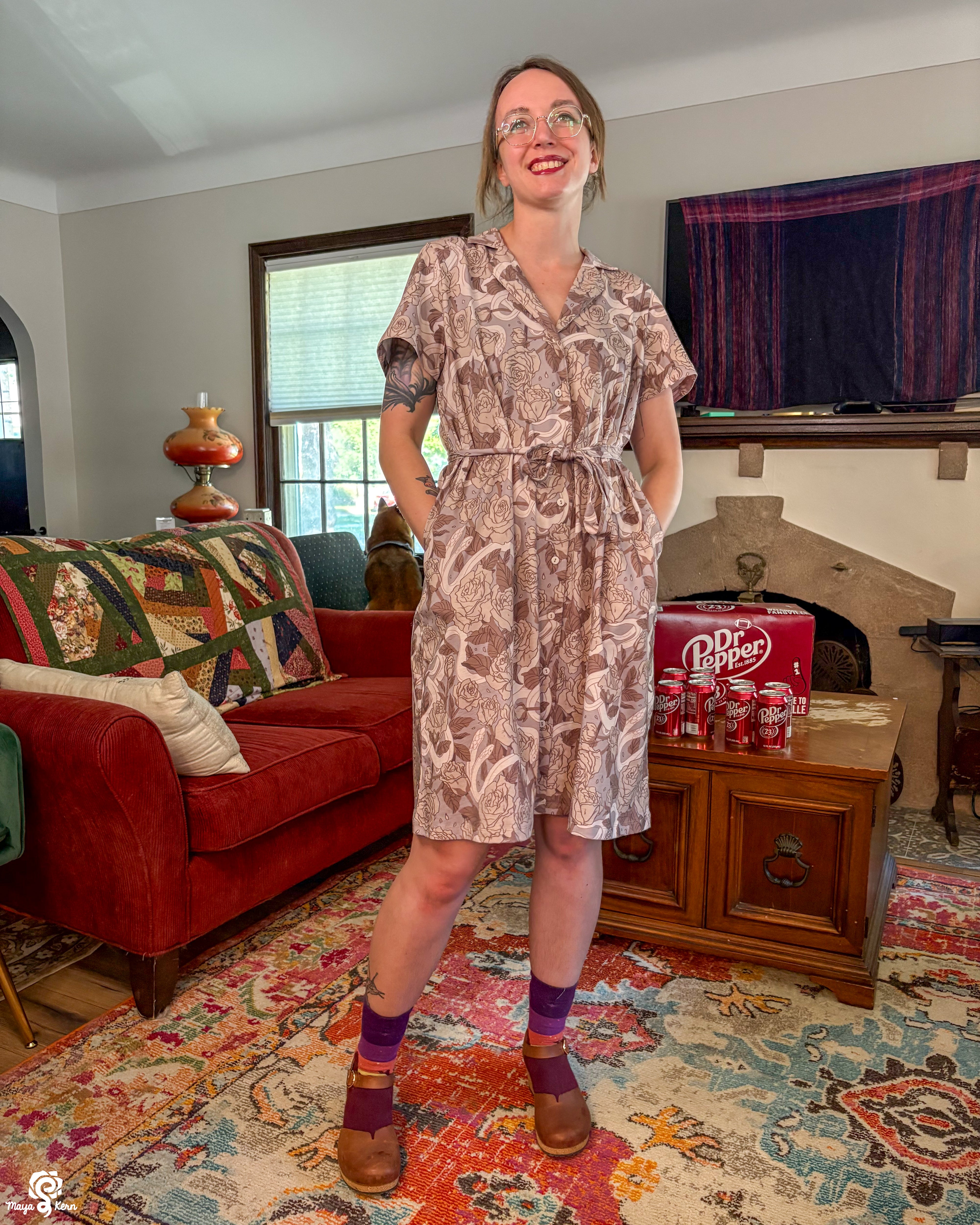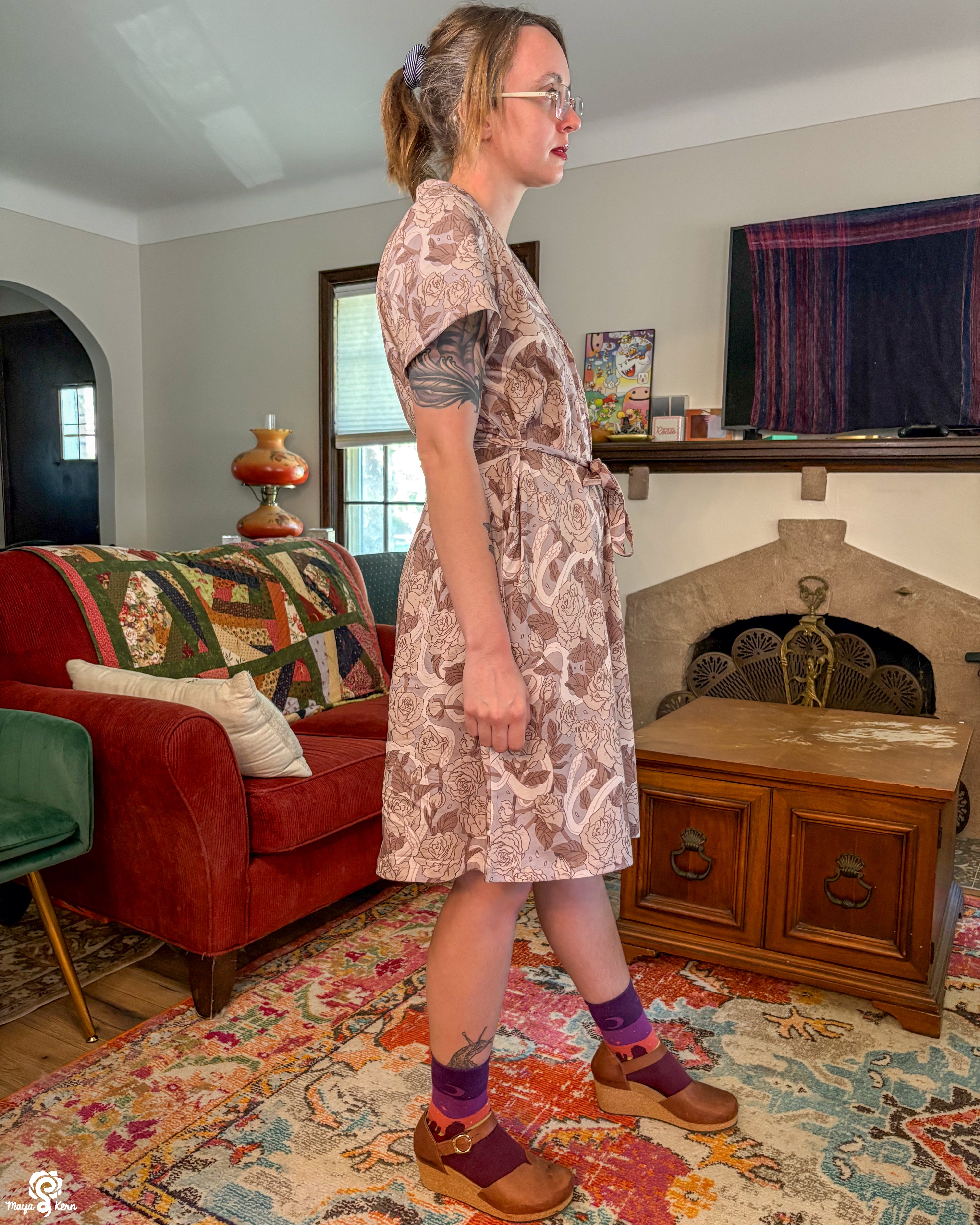 This was one of the first Maya skirts I've owned (I was lucky enough to order 3) and it is stretchy, light weight, comfy, has pockets big enough to fit my yeti, and it twirls really well even without a petticoat. Shattered Earth did an amazing job designing the silly squiggly kitties. They make me smile (: and I hope others smile when they see it too