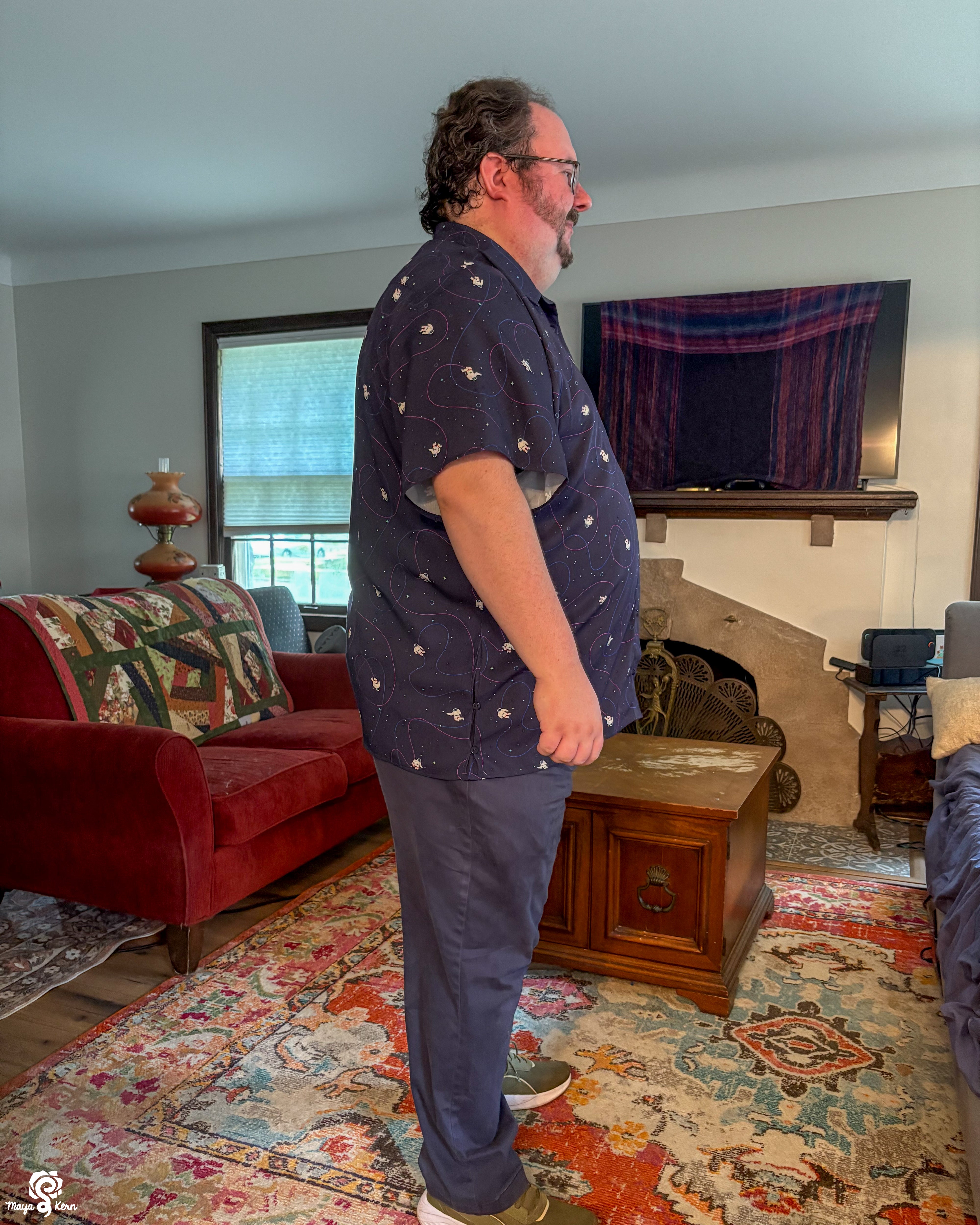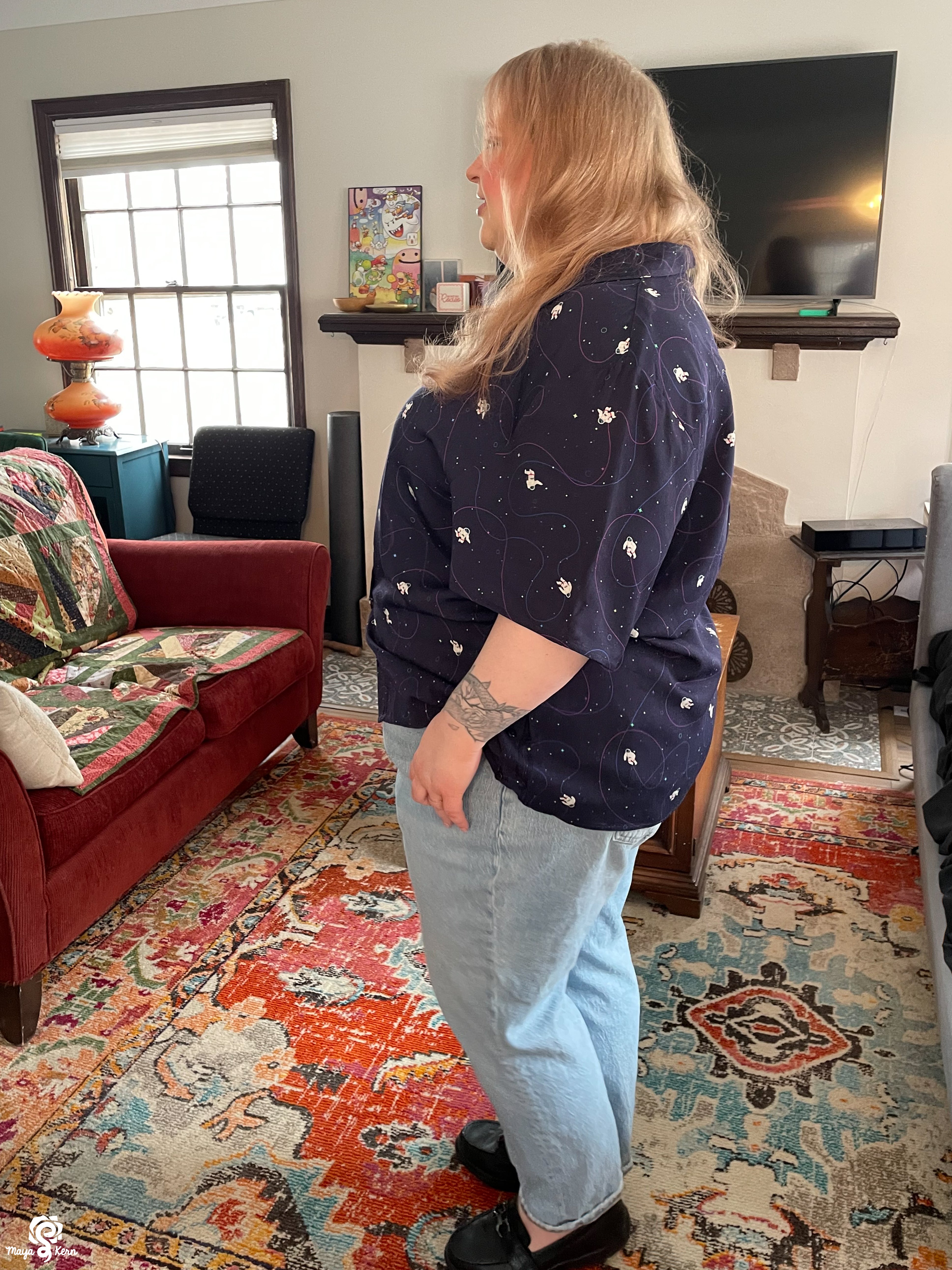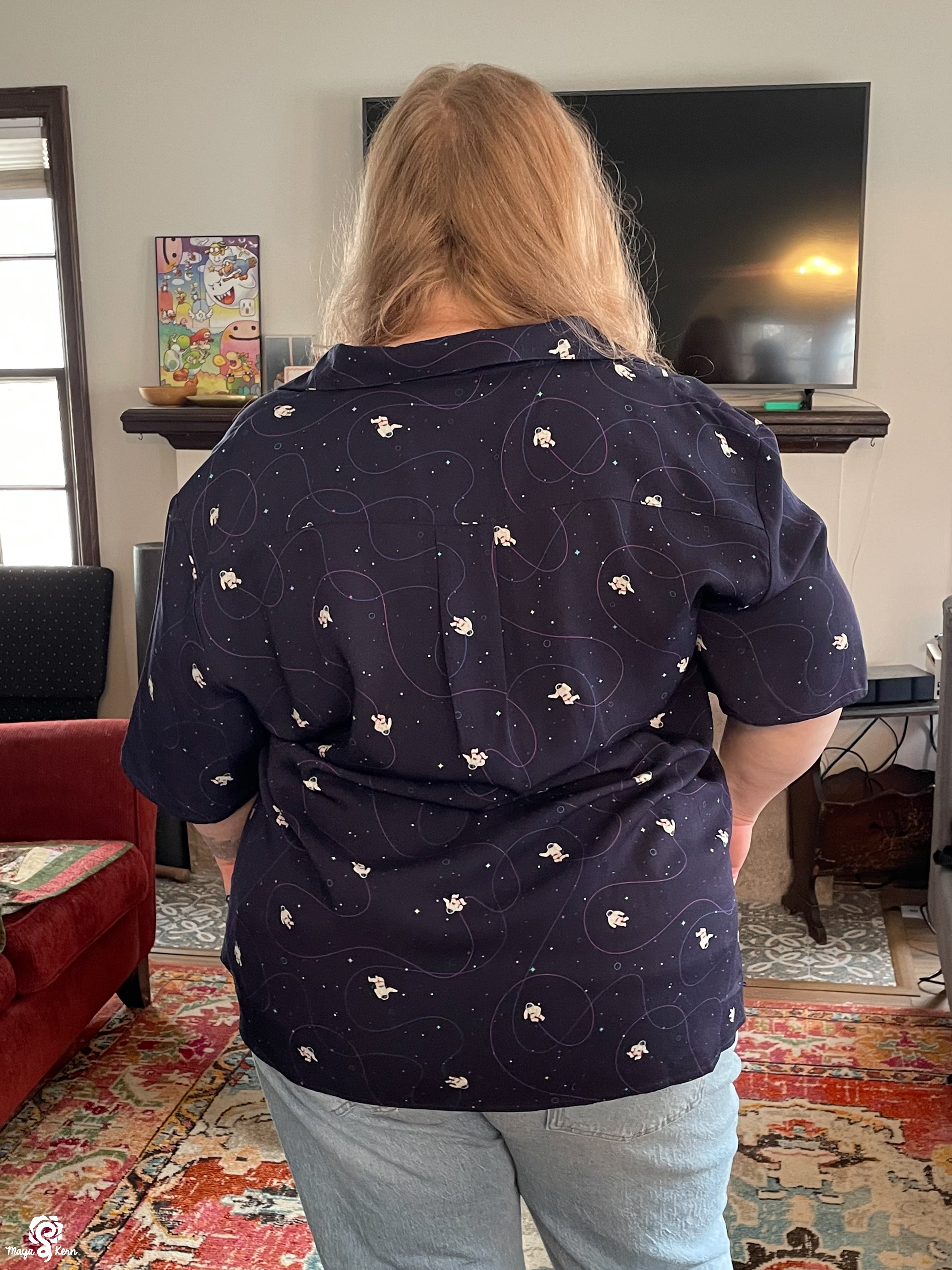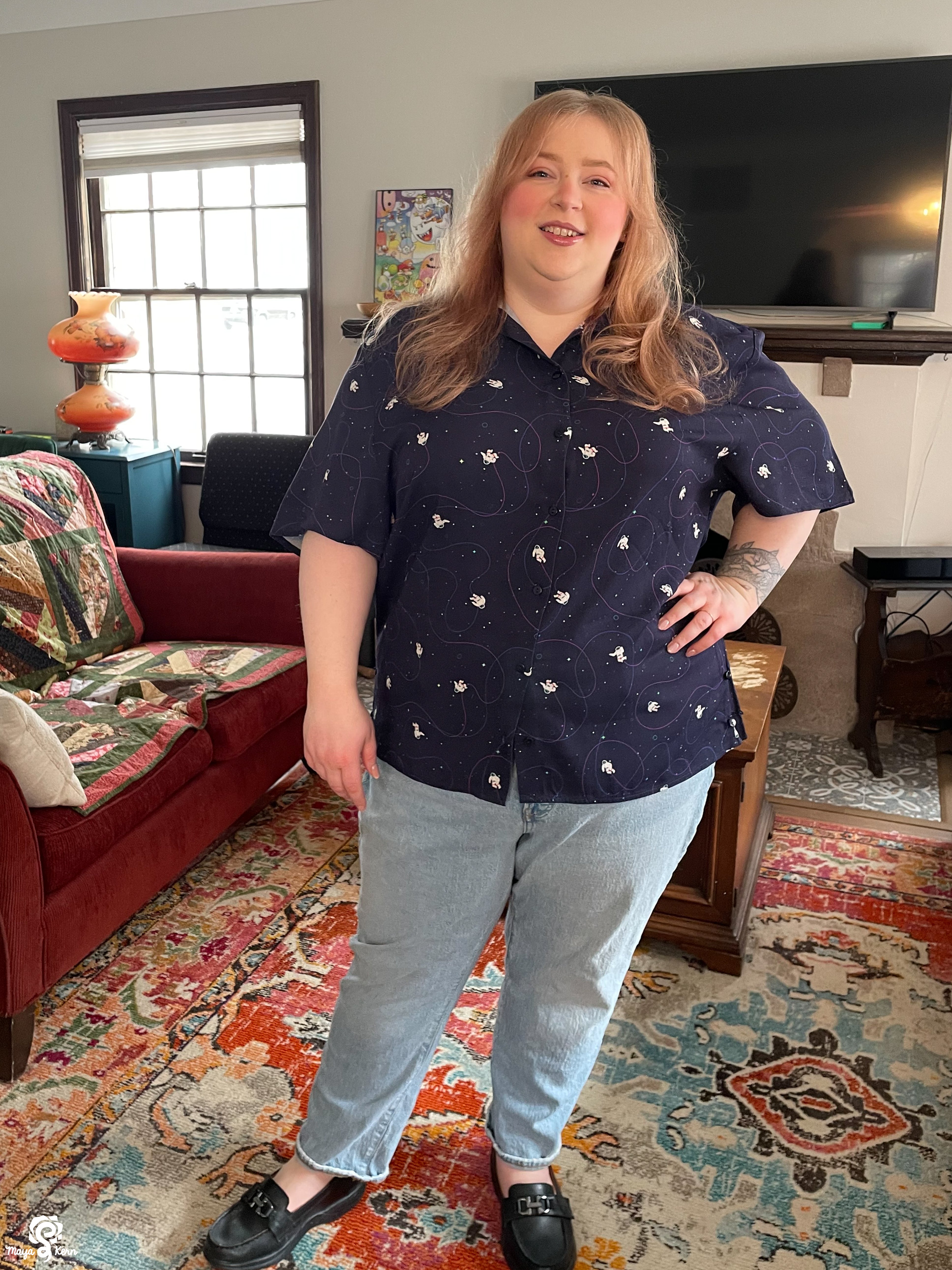 I really want to say I love this shirt. The weight and texture of the fabric is perfect, the pattern is adorable and so very *me*. And the gussets at the hips are ingenious!
