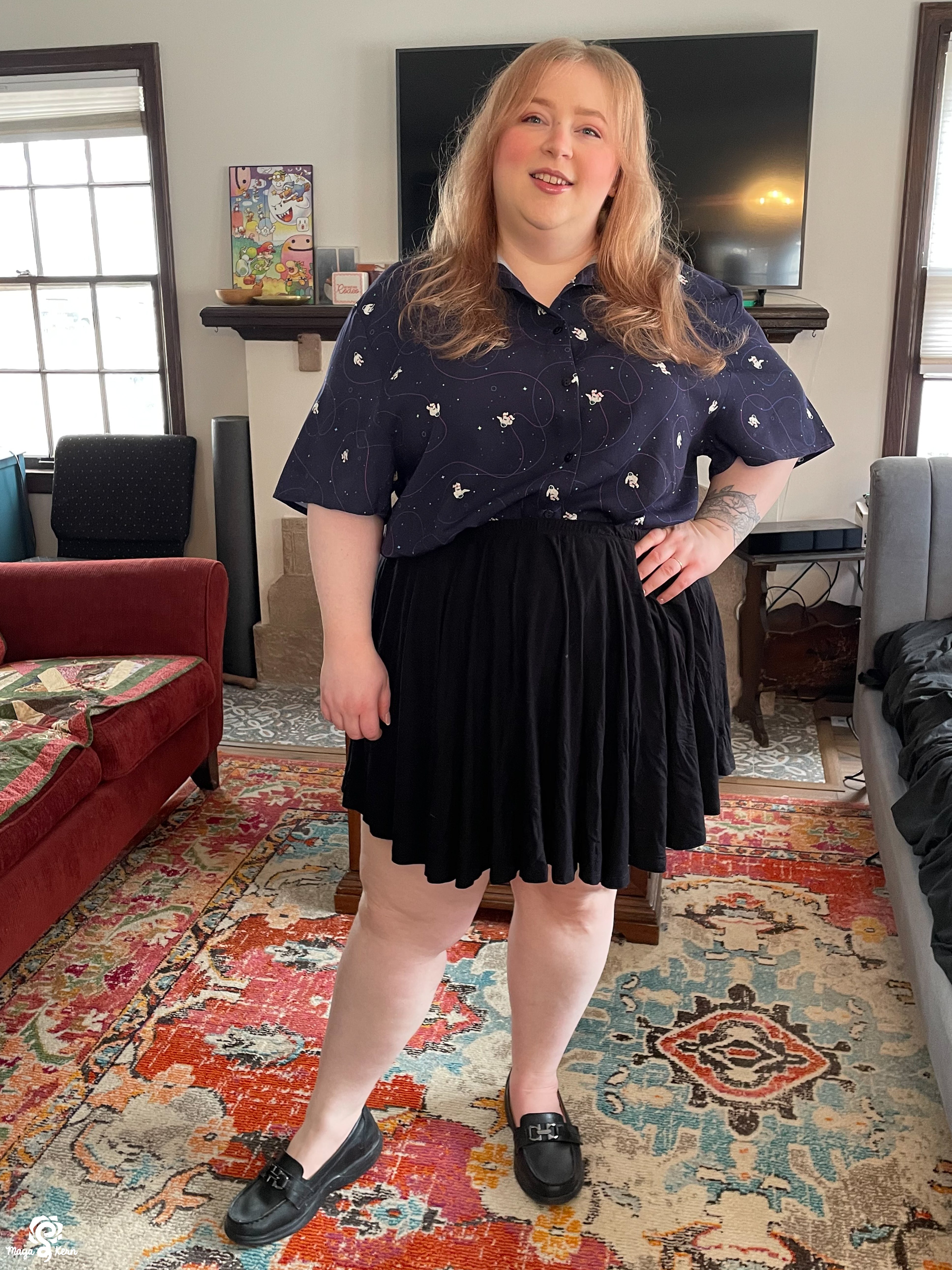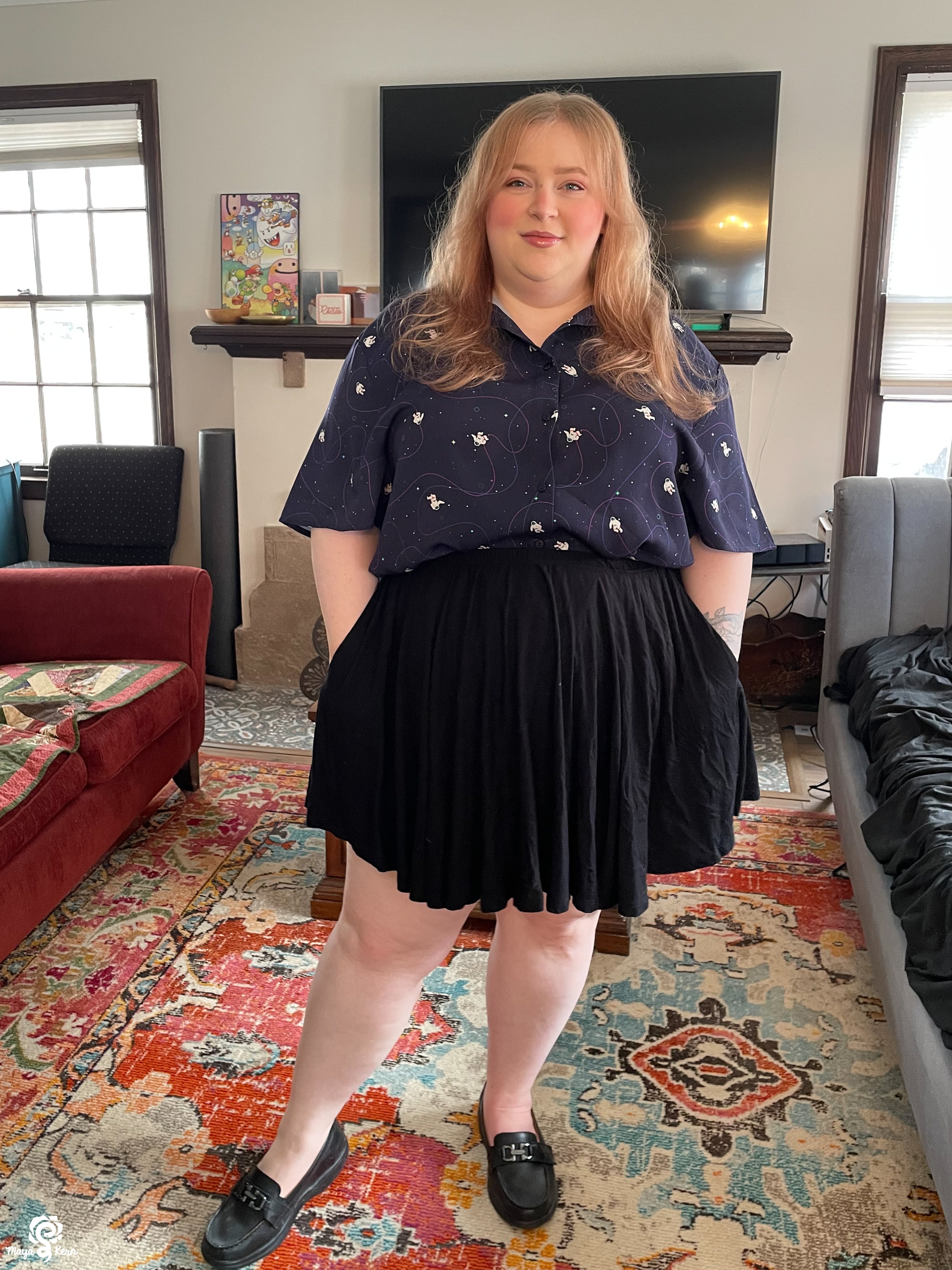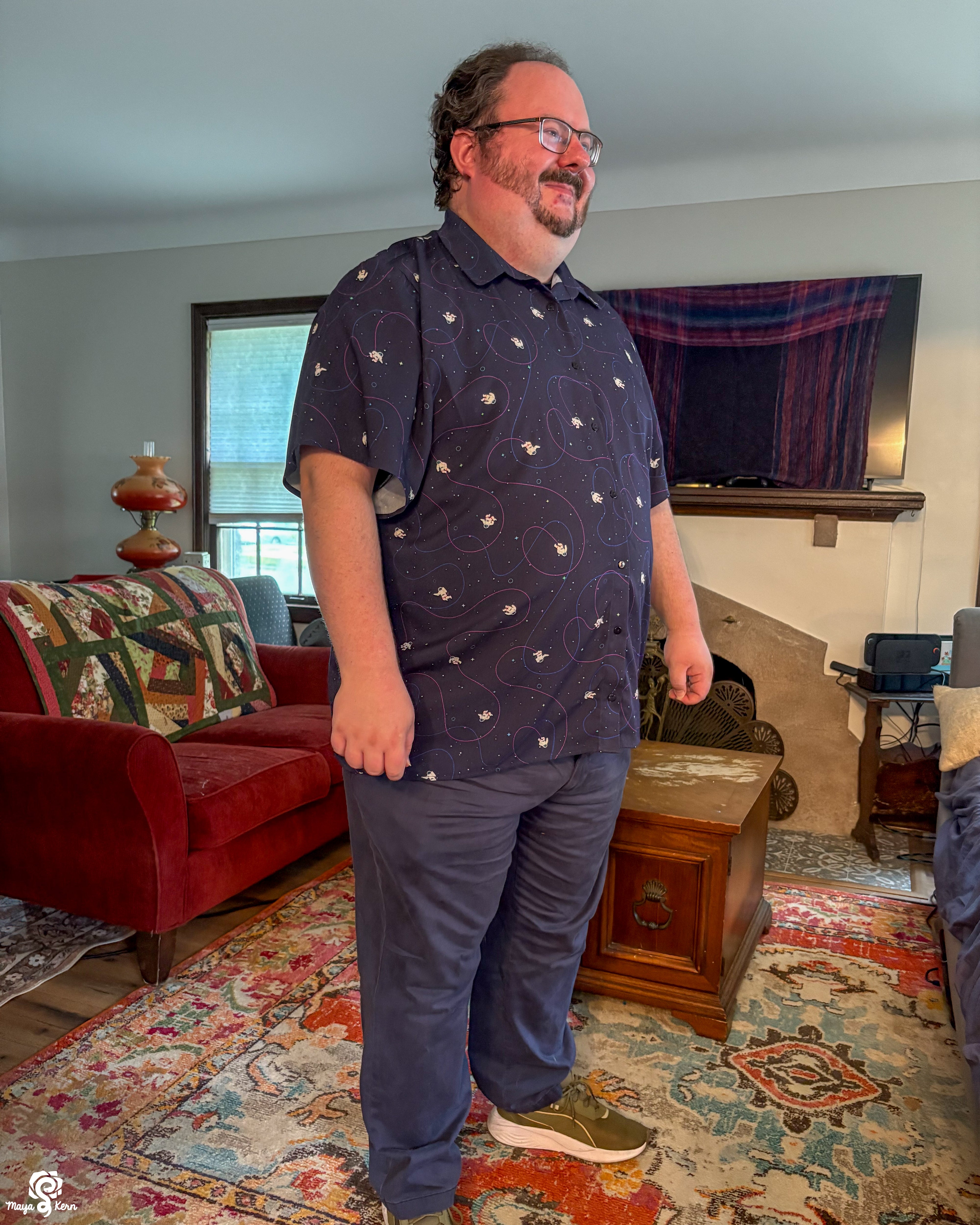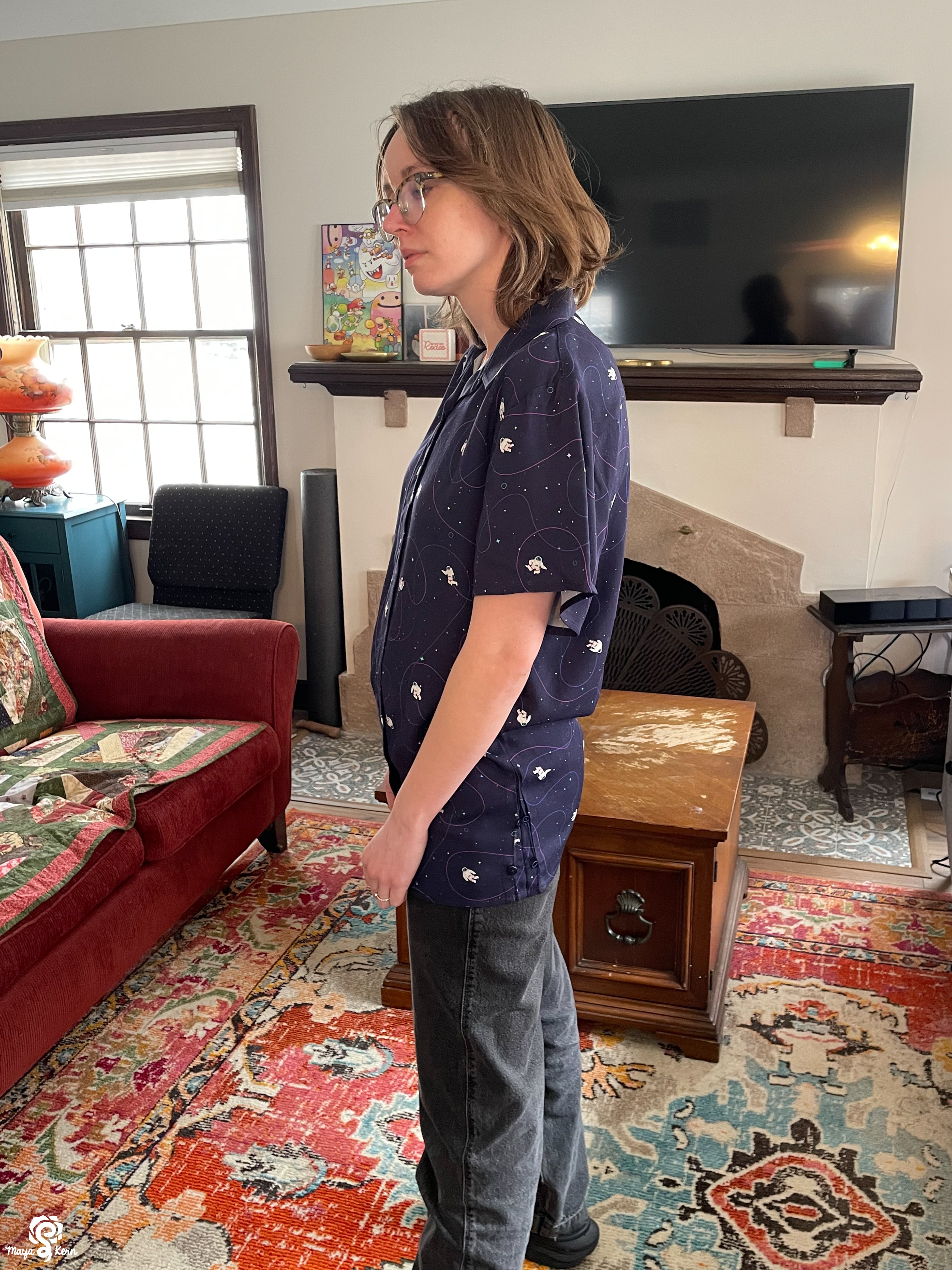I really want to say I love this shirt. The weight and texture of the fabric is perfect, the pattern is adorable and so very *me*. And the gussets at the hips are ingenious!