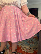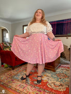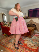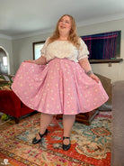 Stretchy circle skirt featuring our horseshoe crab design, a collaboration between me and my wife, Devin, against a soft pastel pink background. These skirts have pockets large enough to fit your phone, DS, Switch, hands, and maybe a small cat. Petticoat not included.