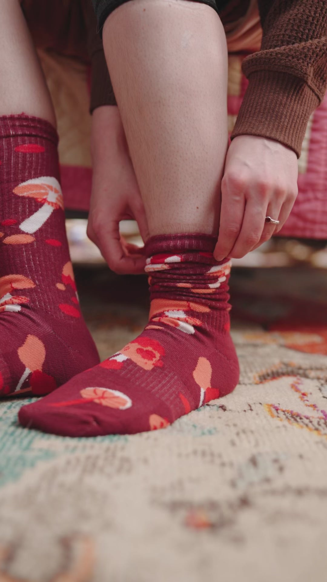 A pair of super comfy, stretchy ribbed cotton socks featuring my Autumn Mushrooms design.