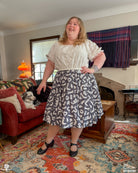 Maya is wearing a midi skirt in size 2-3XL