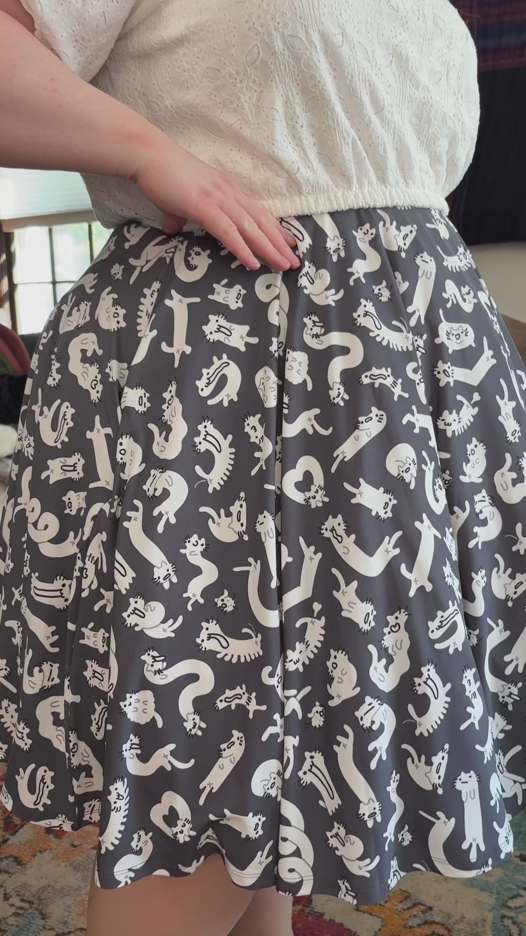 COLLAB: Shattered-Earth Squiggle Cats Midi Skirt
