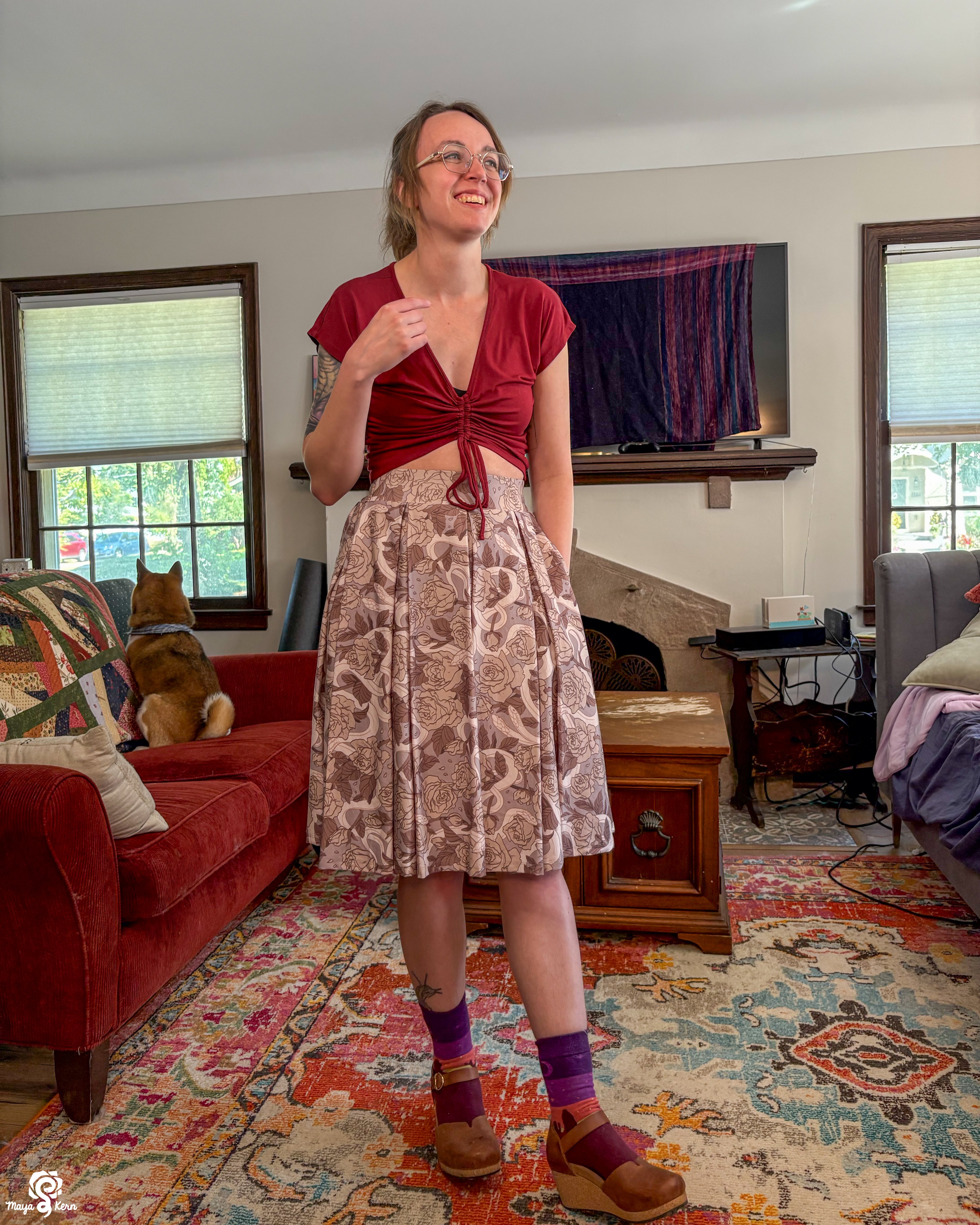 Our pleated skirt has the same great pockets you know and love from our other midi skirts--deep enough to fit a 2TB hard drive, 5 bagels, a Nintendo Switch, or a small and well tempered cat.
