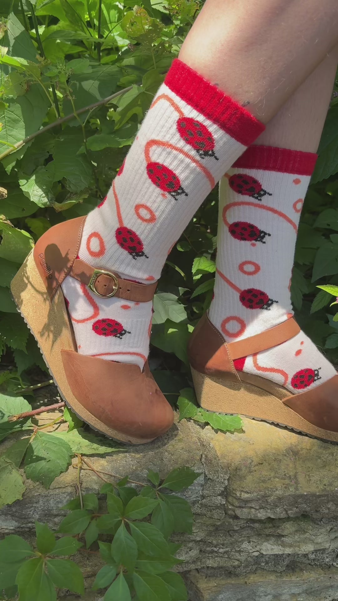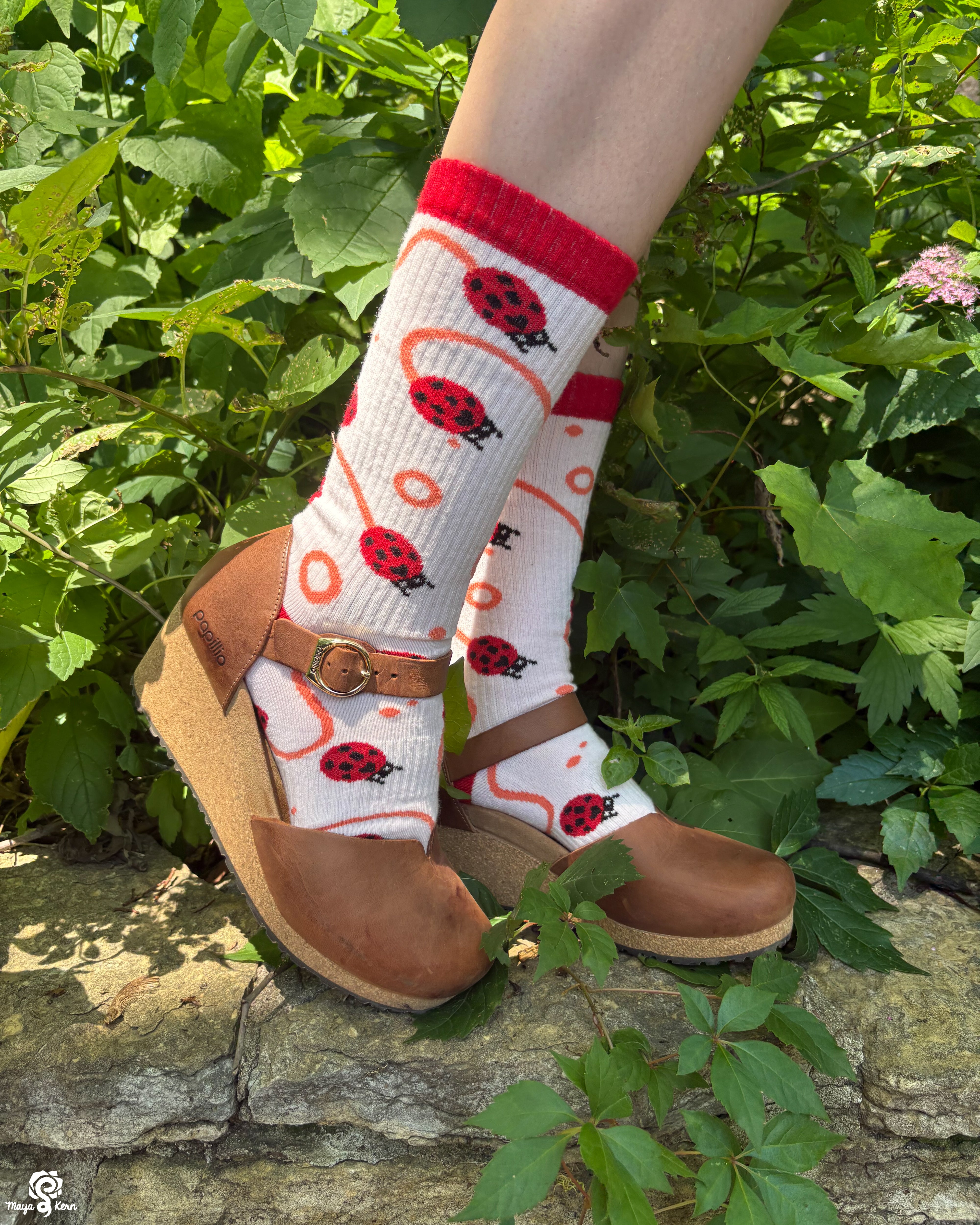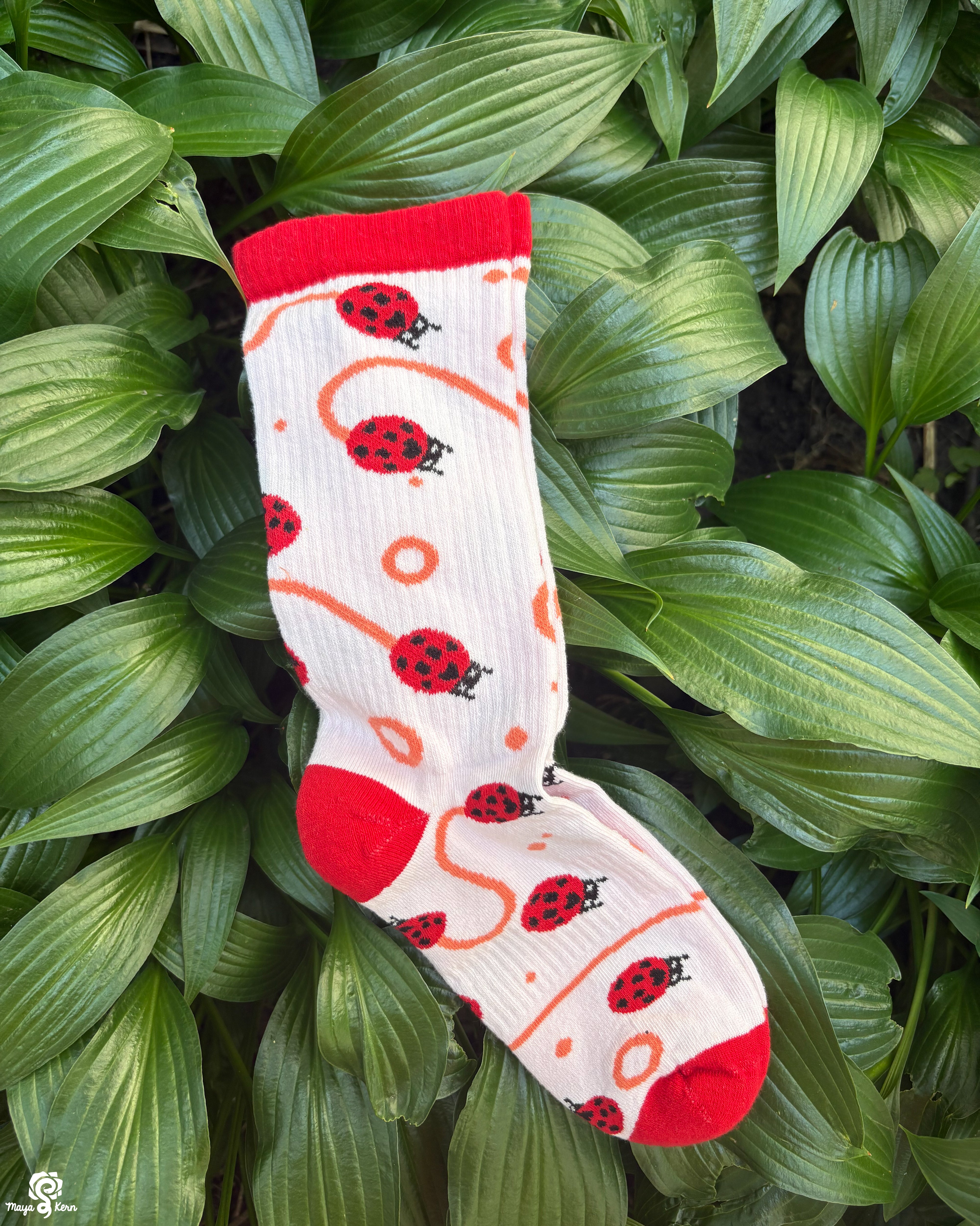 A pair of super comfy, stretchy ribbed cotton socks featuring my ladybug design.