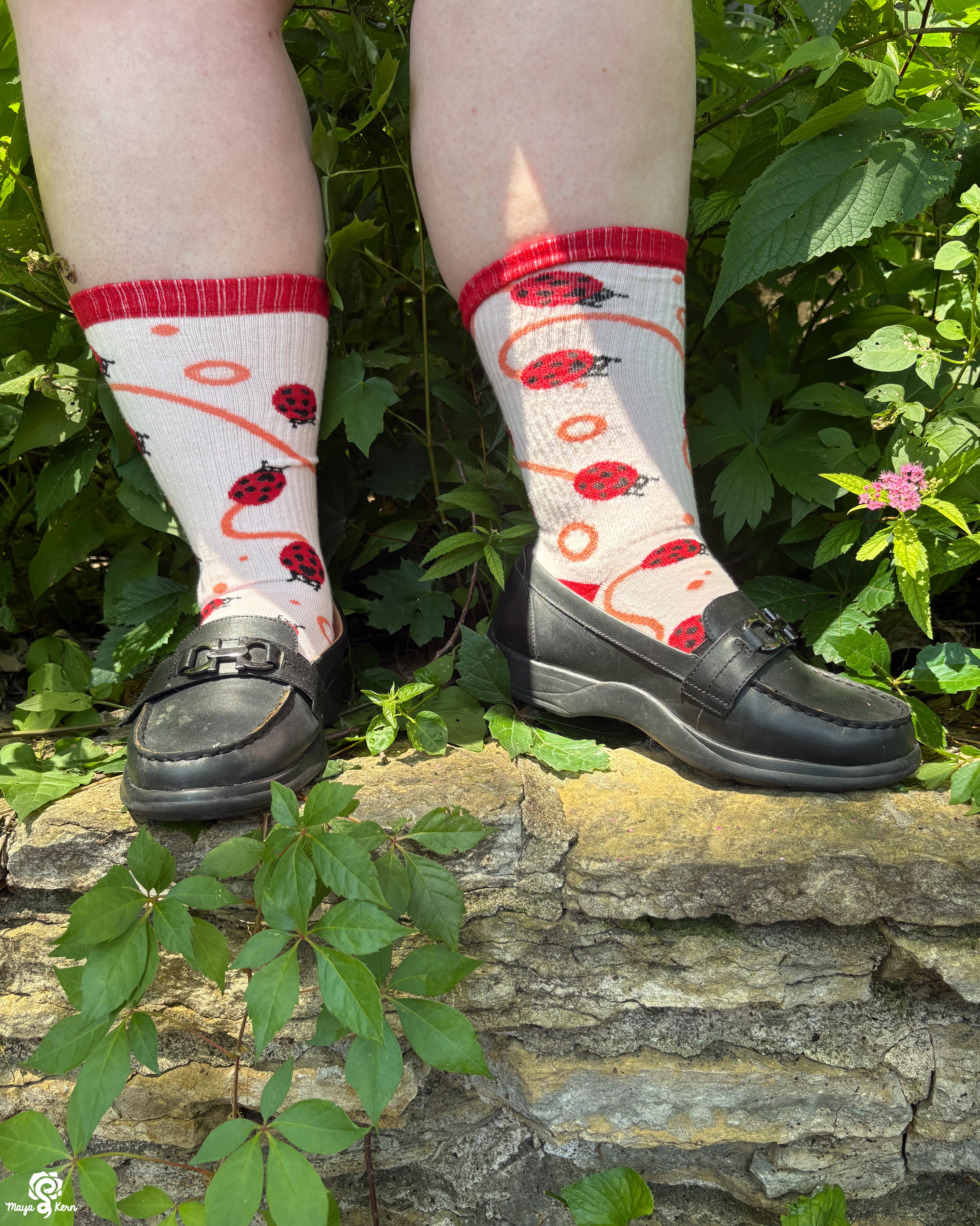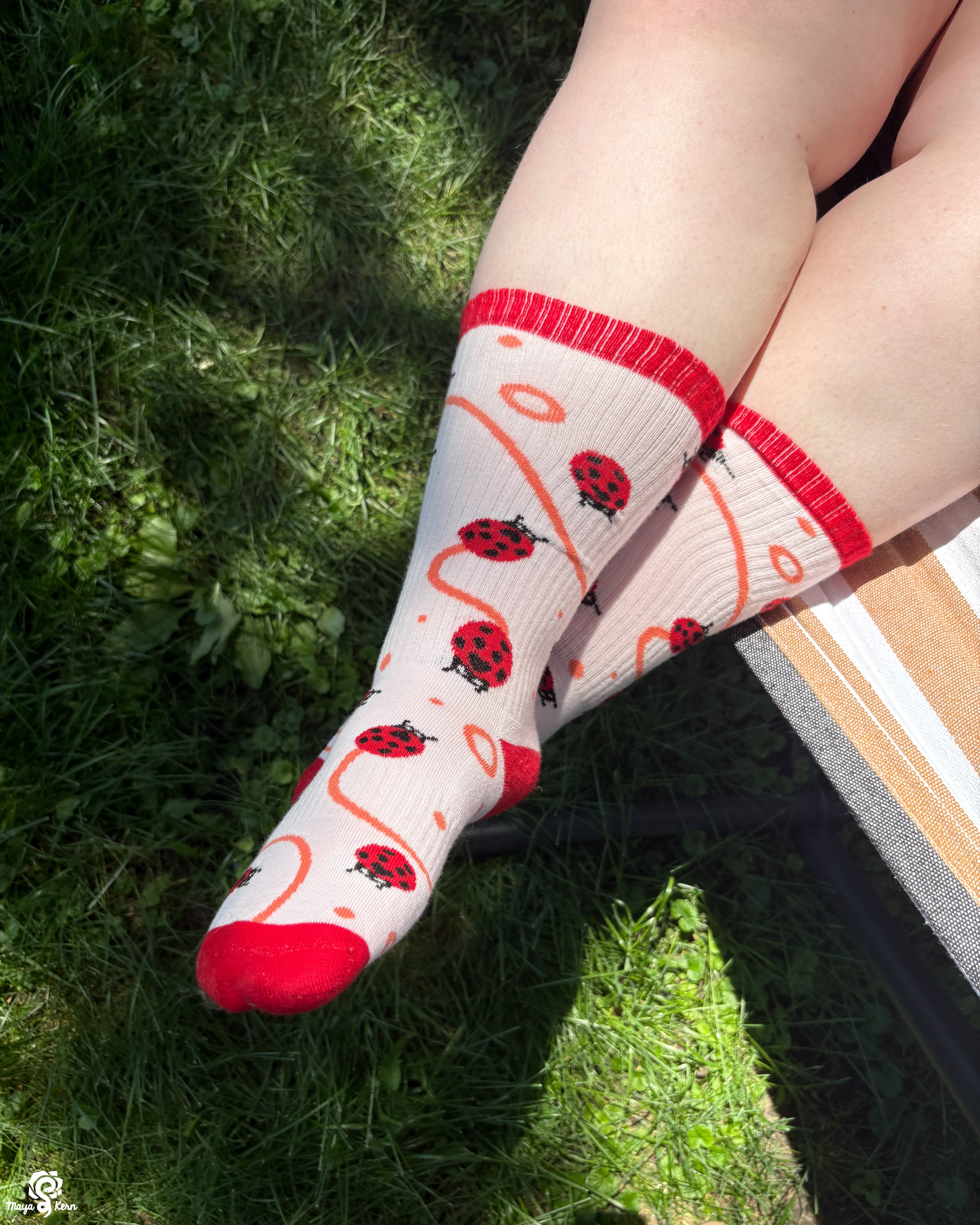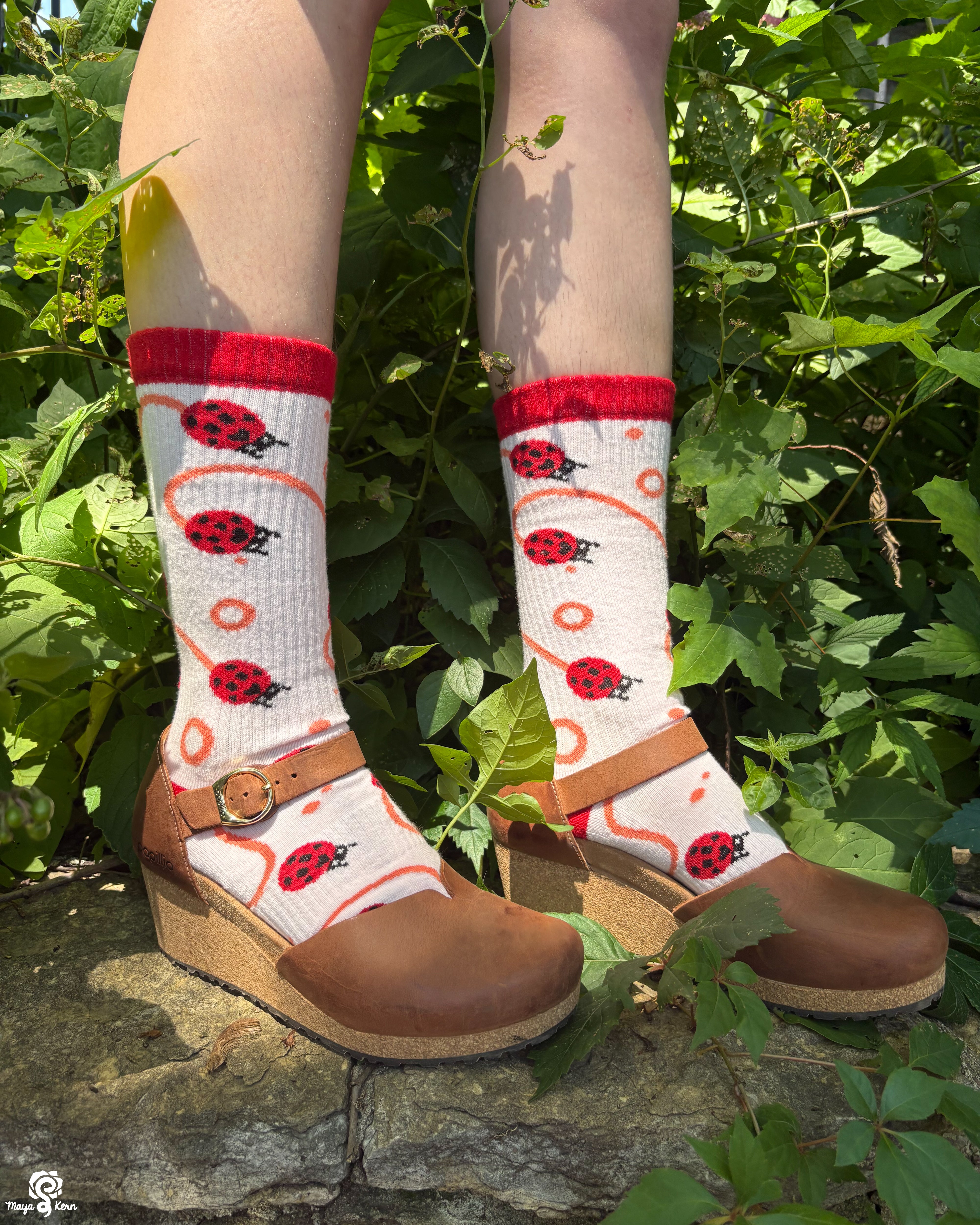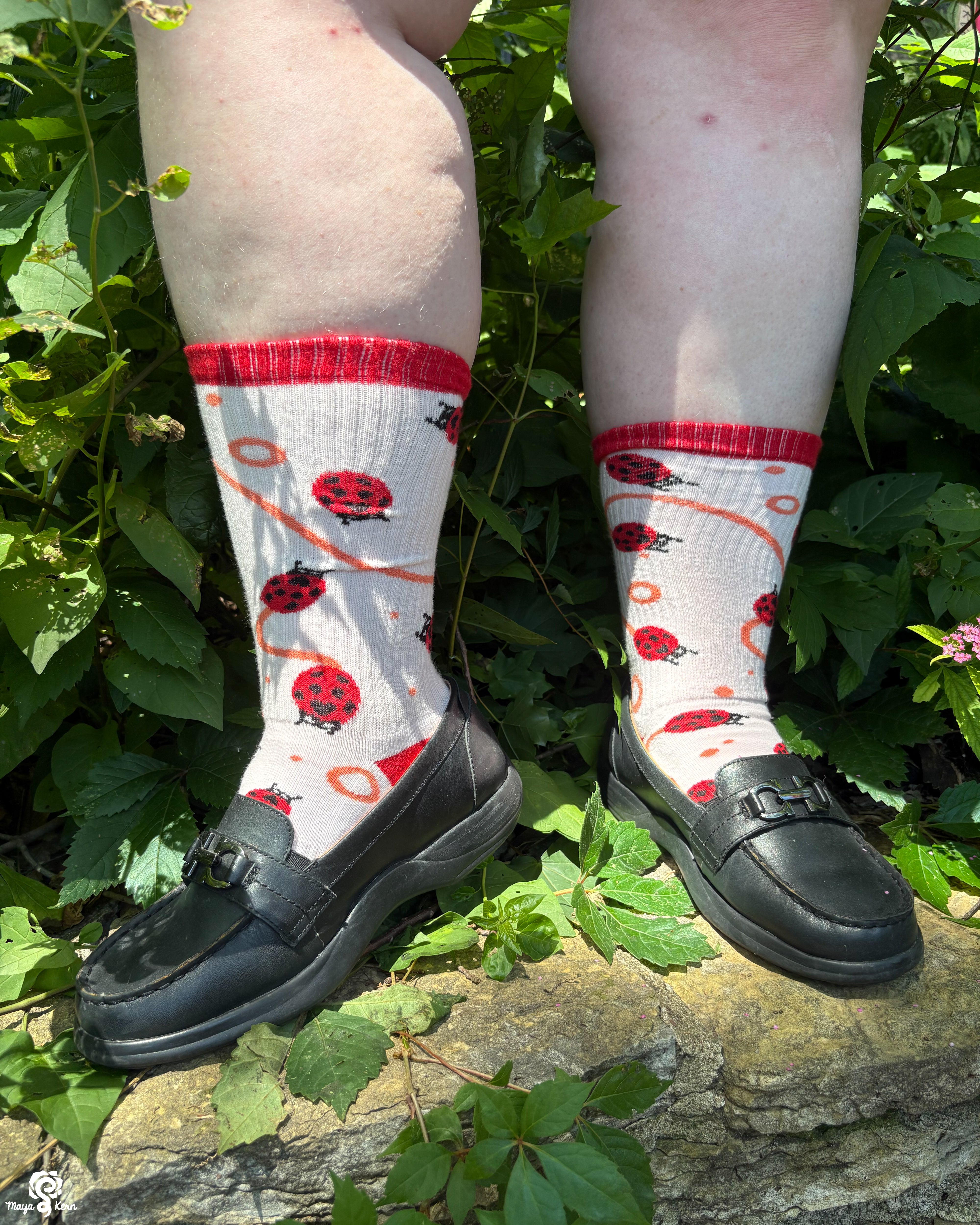 A pair of super comfy, stretchy ribbed cotton socks featuring my ladybug design.