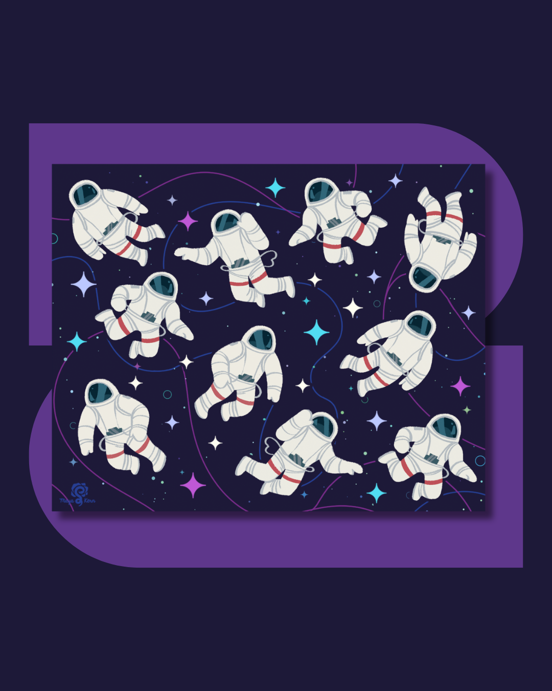 Two glossy water resistant vinyl sticker sheets of my Astronauts design. 100 microns thick. 5x4". Includes two sheets.