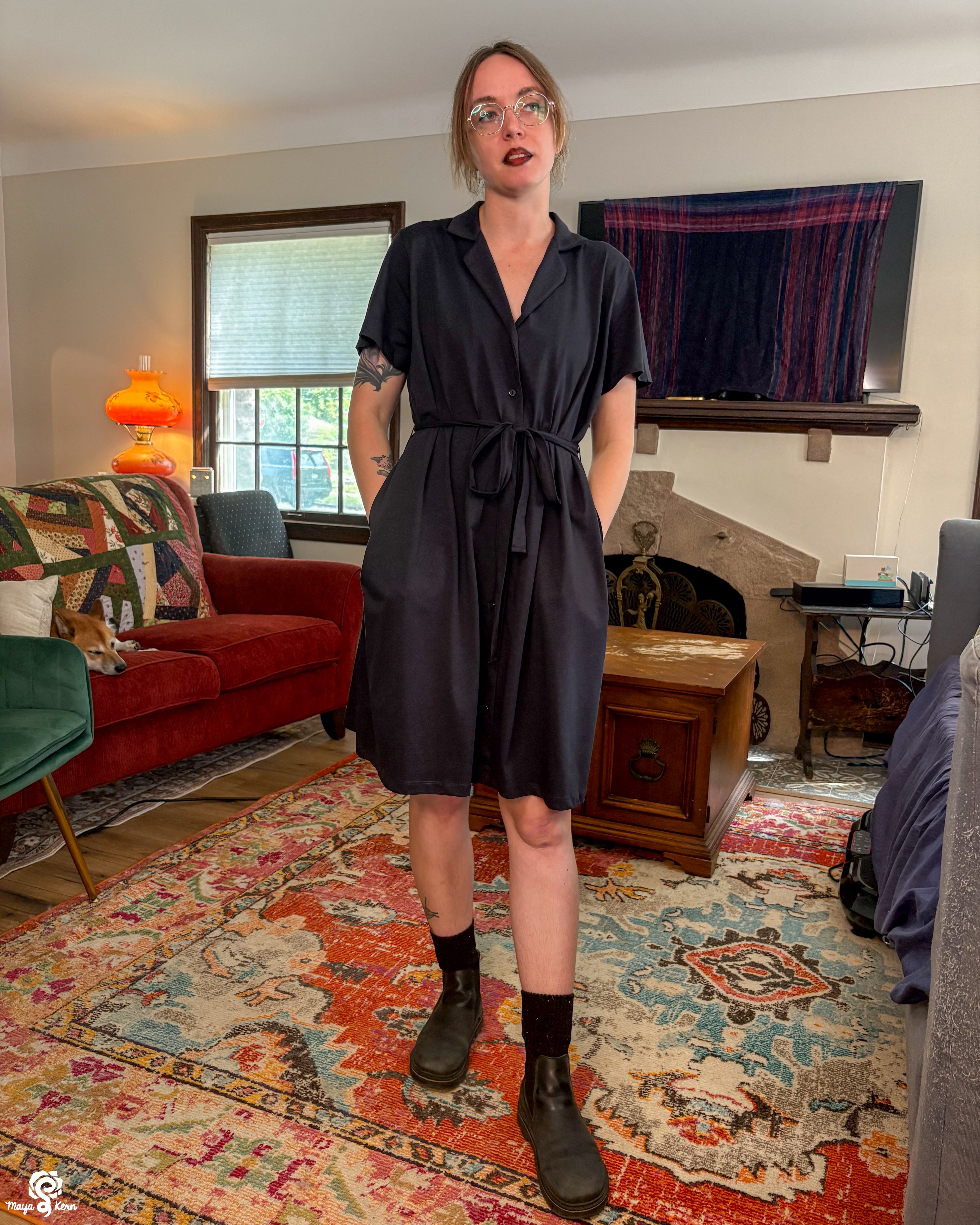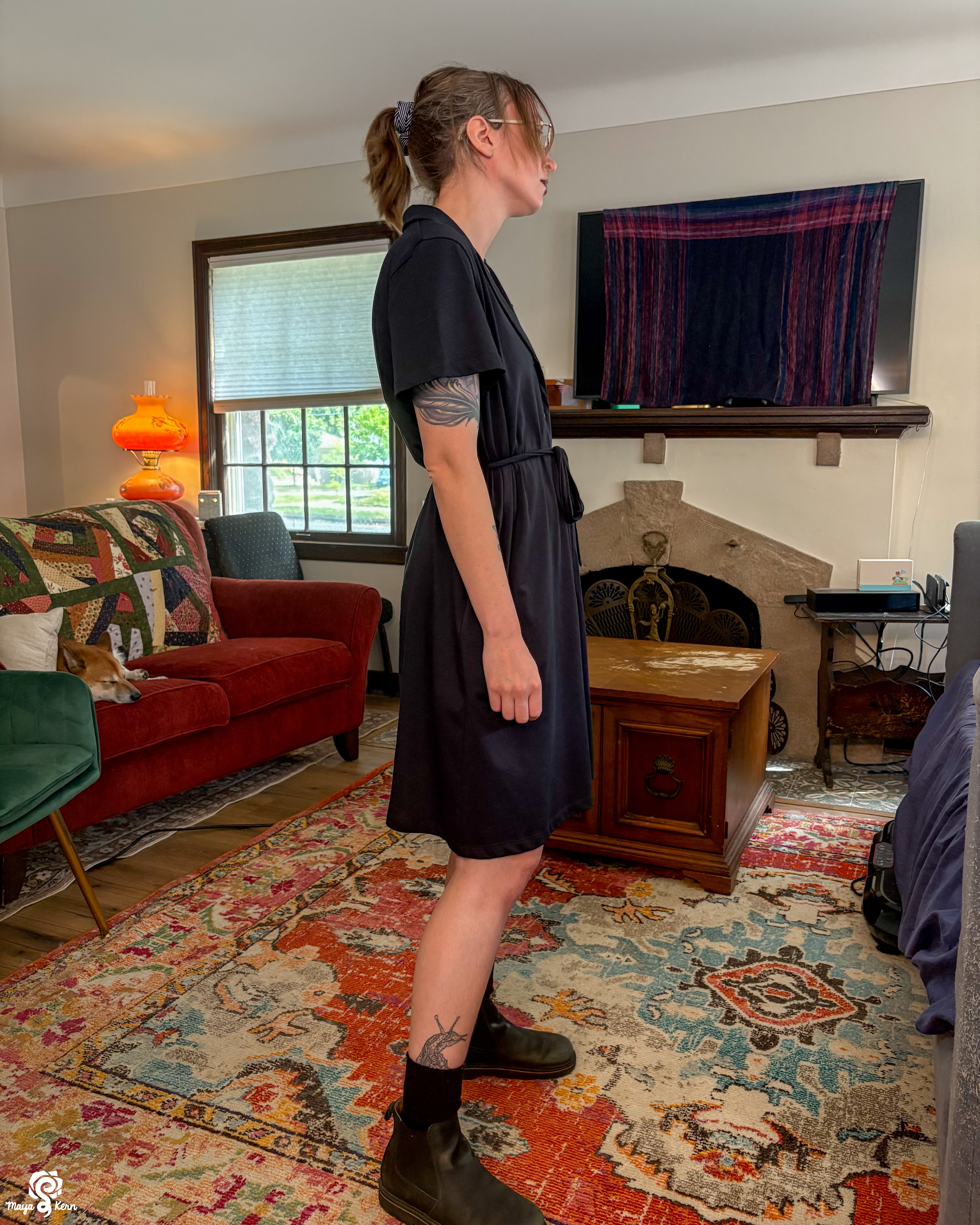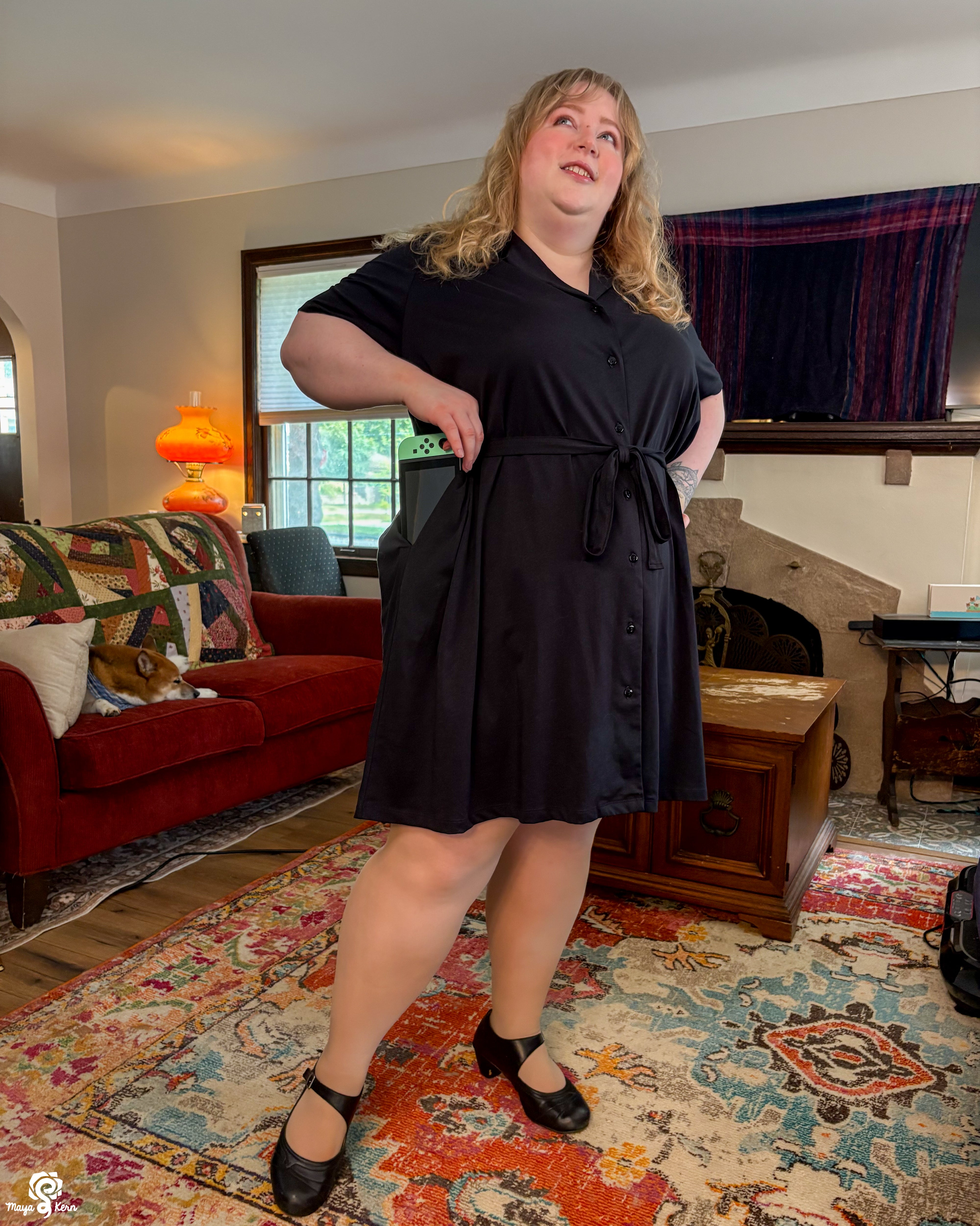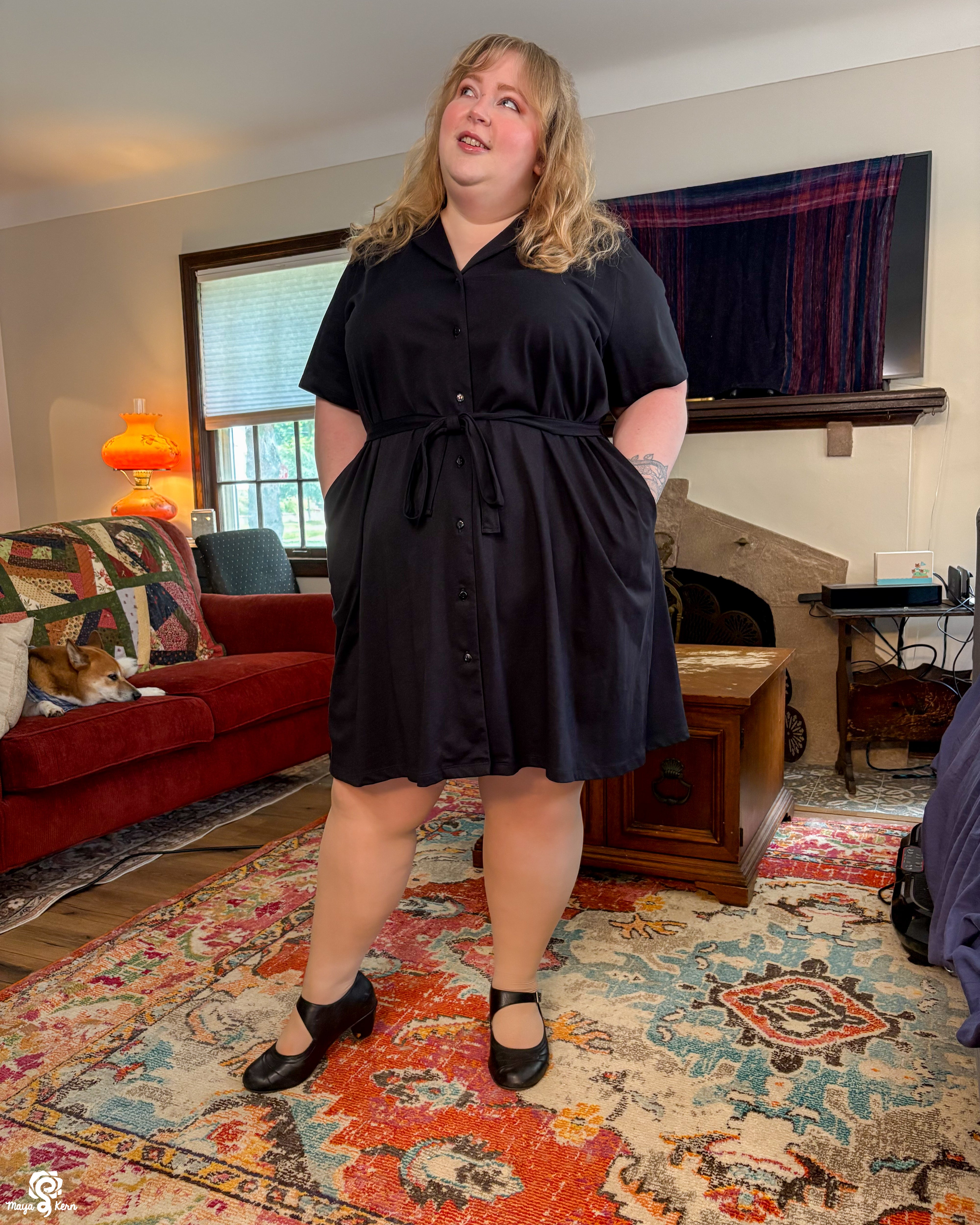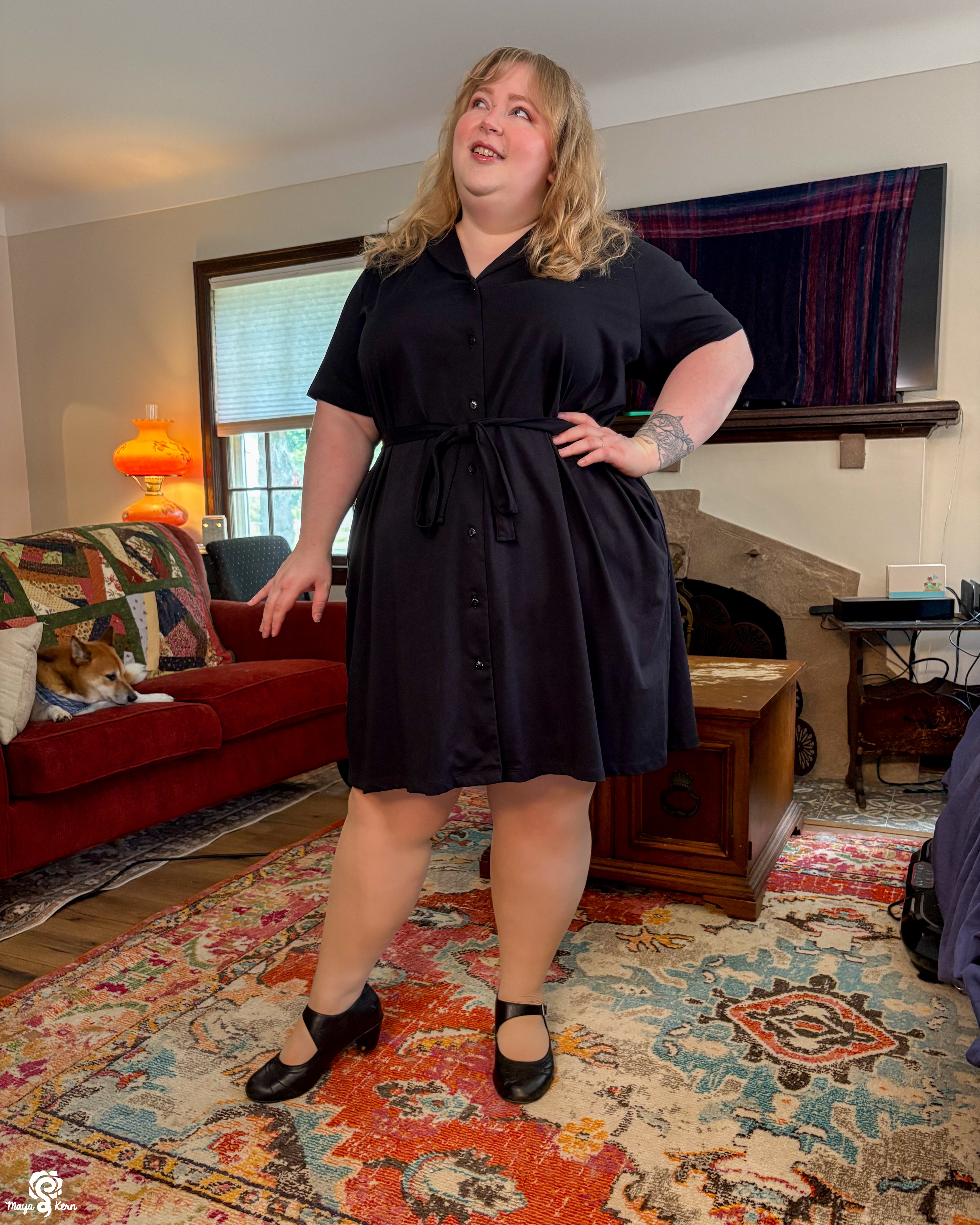 Maya is wearing the dress in size 2XL