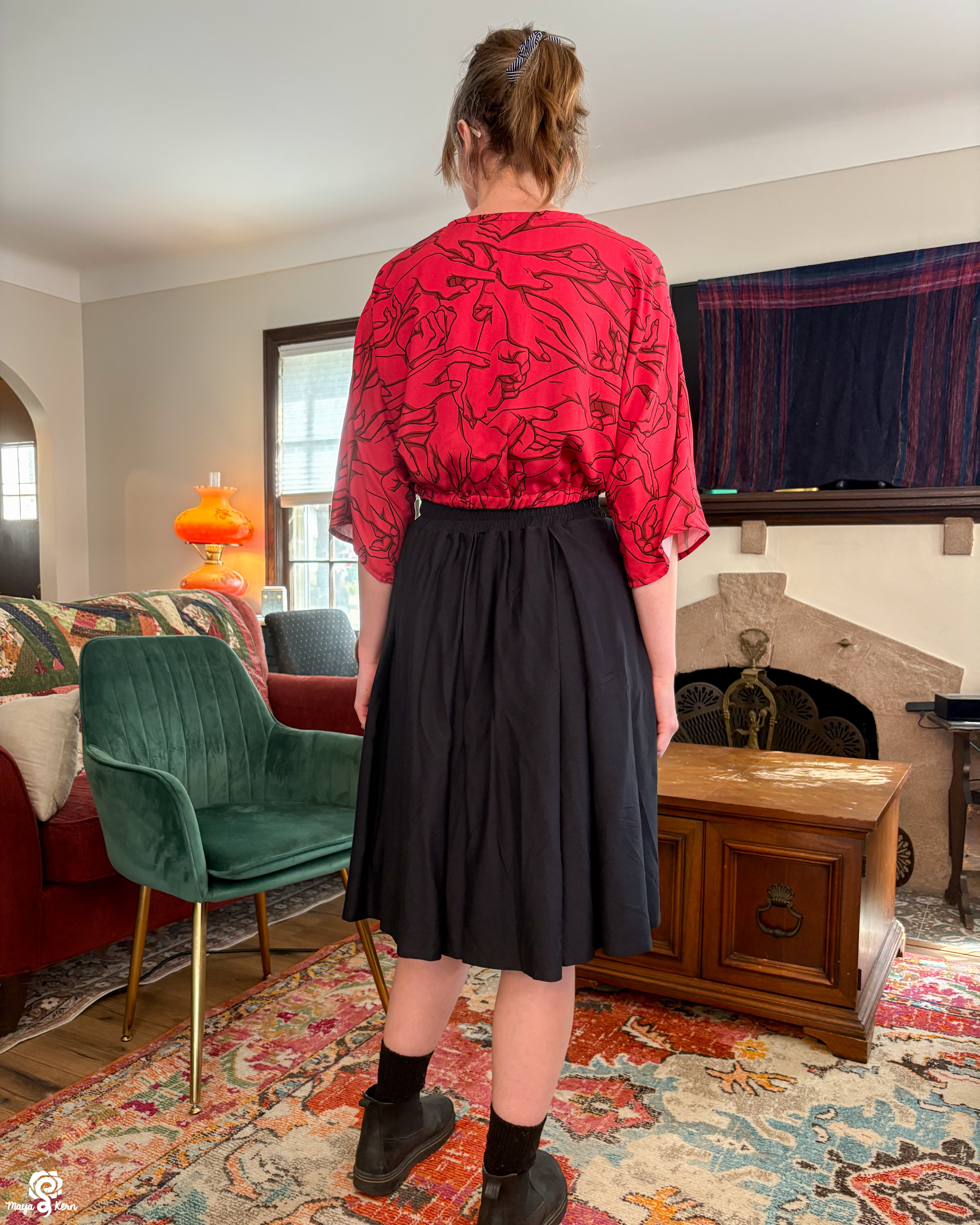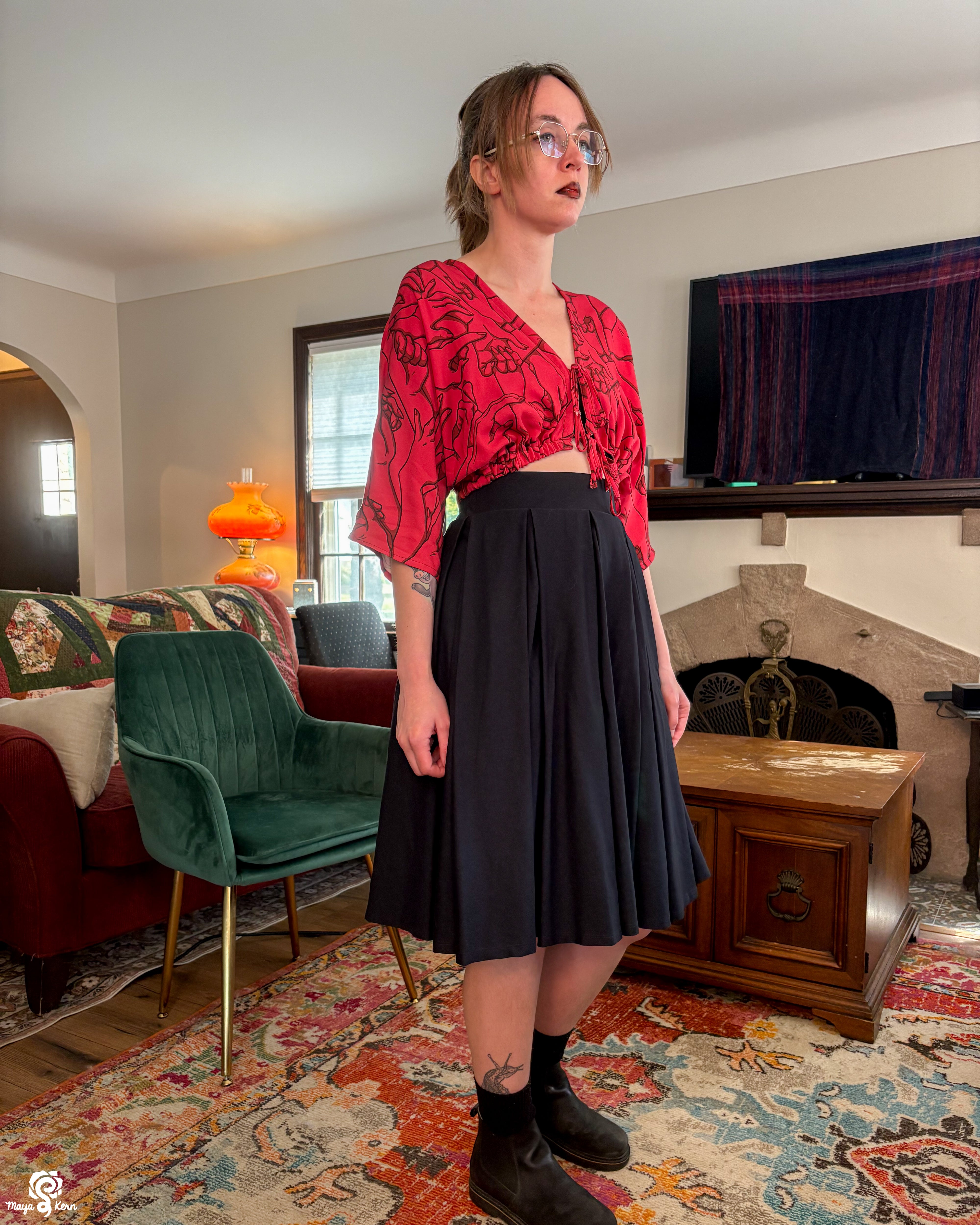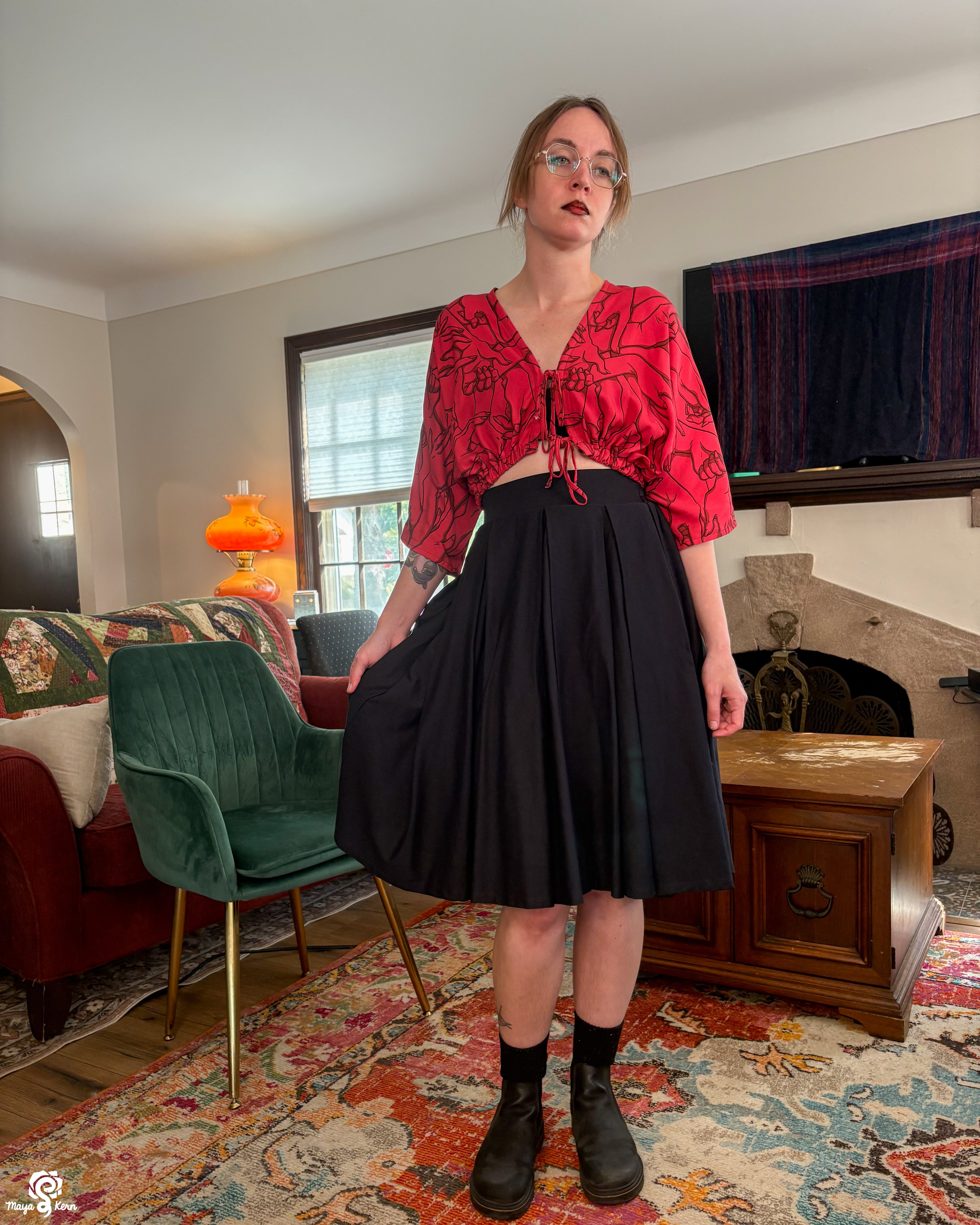 Our pleated skirt has the same great pockets you know and love from our other midi skirts--deep enough to fit a 2TB hard drive, 5 bagels, a Nintendo Switch, or a small and well tempered cat.