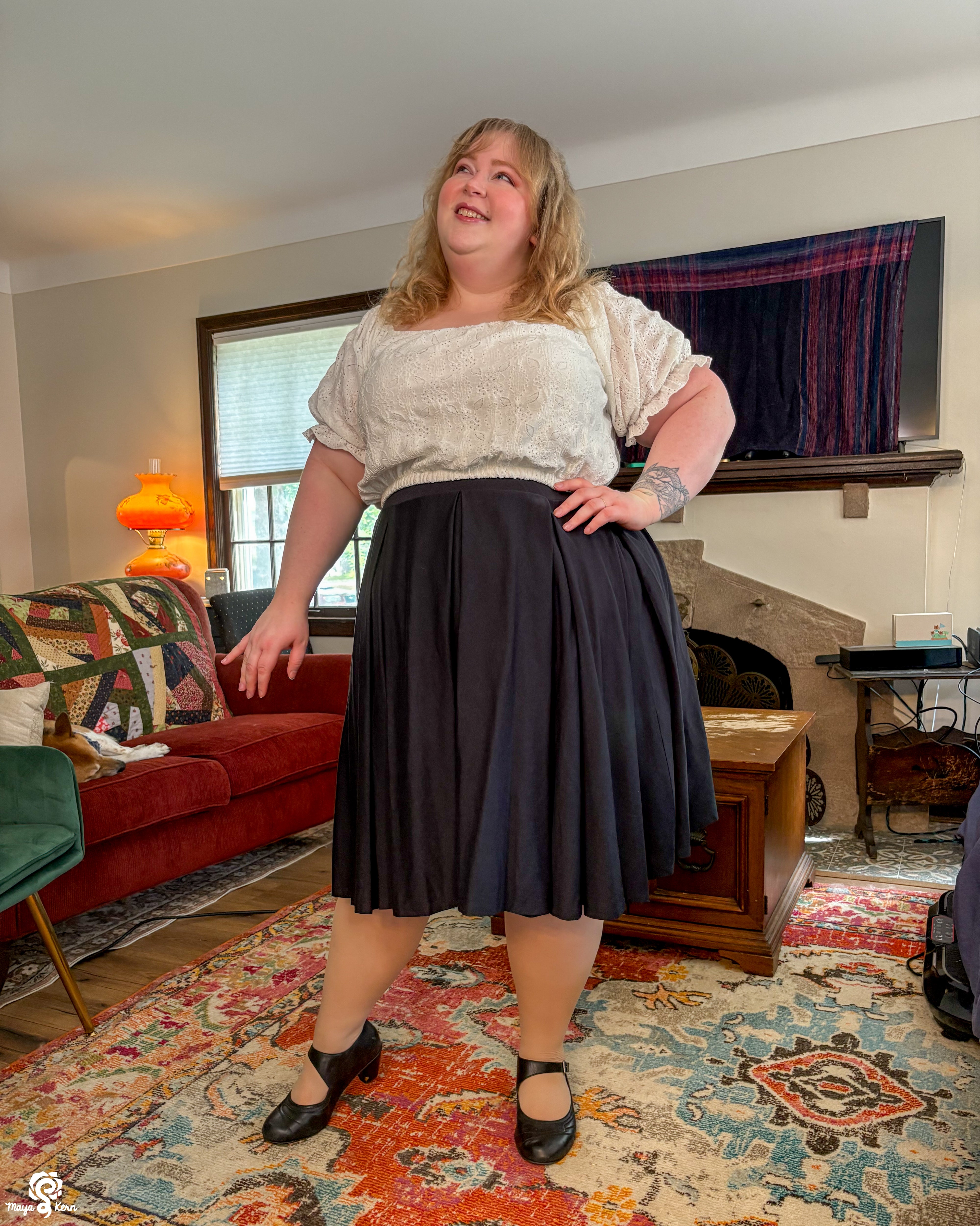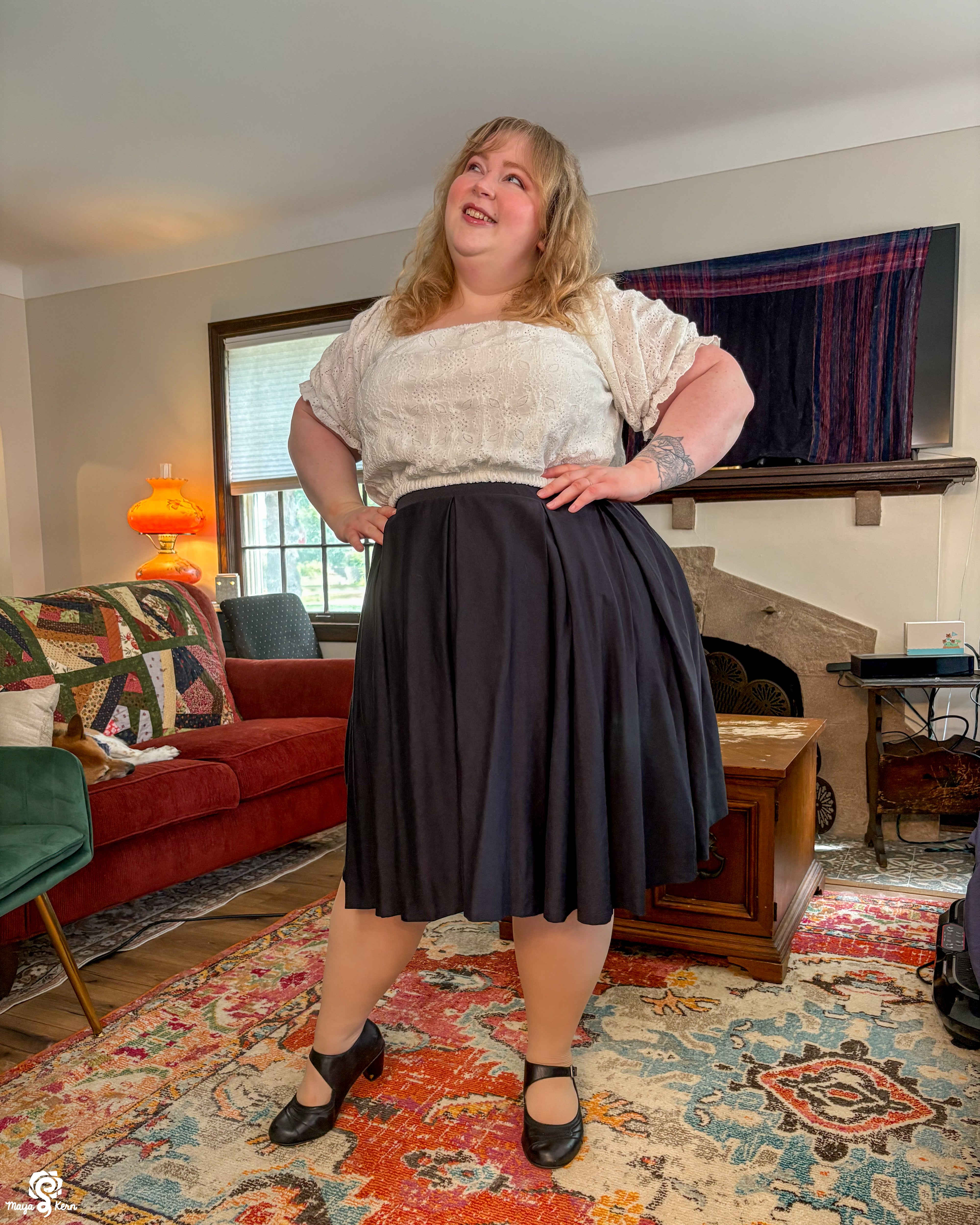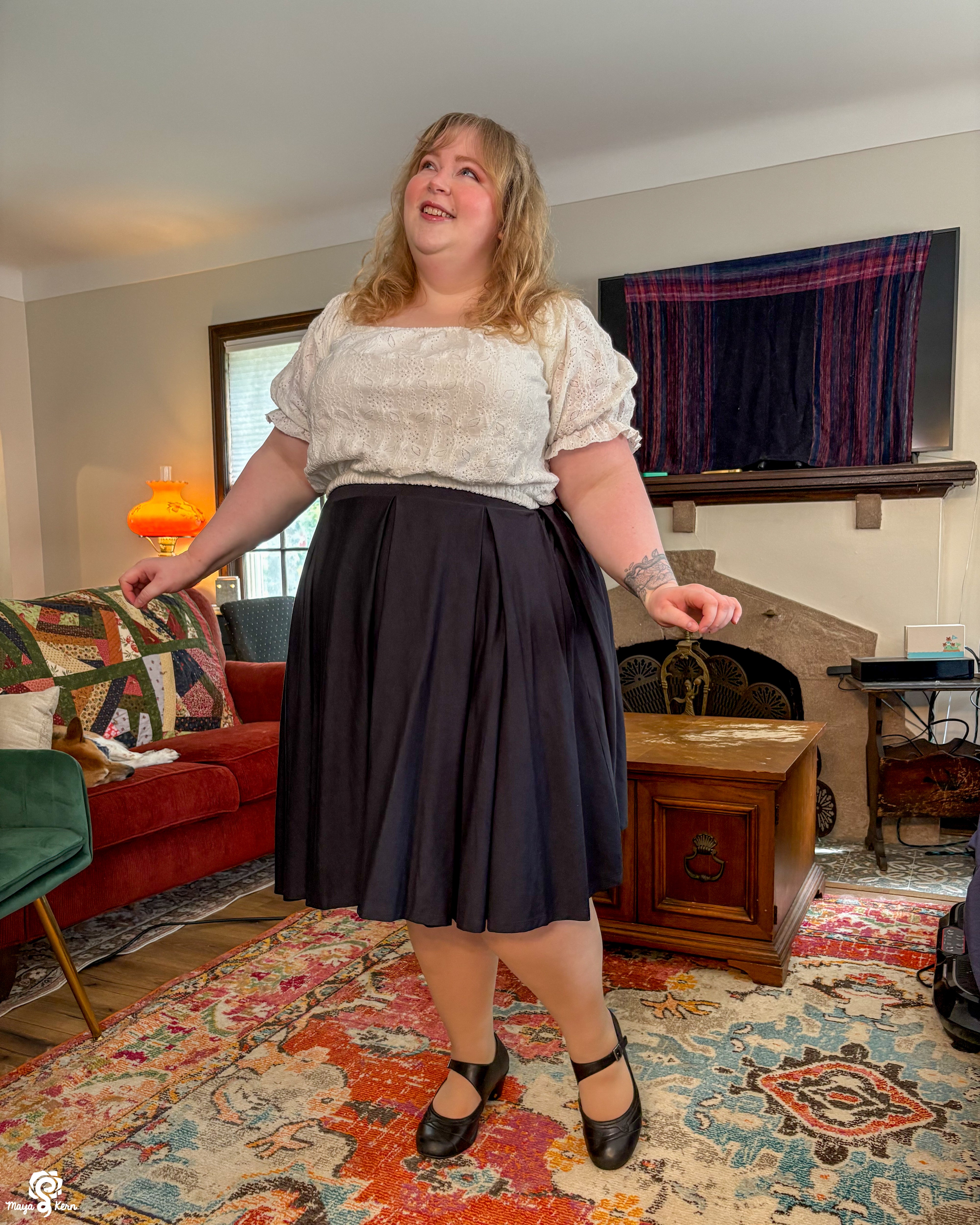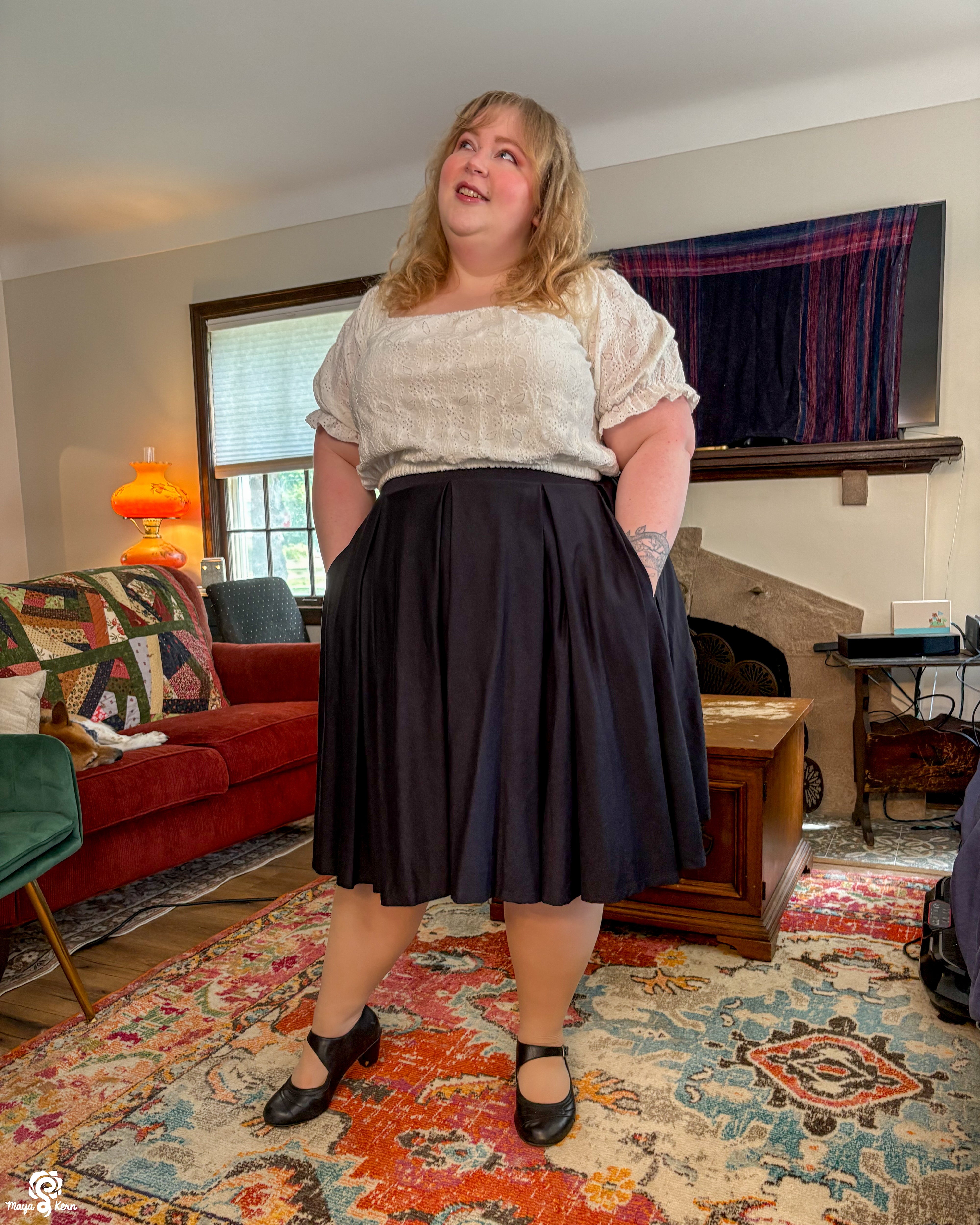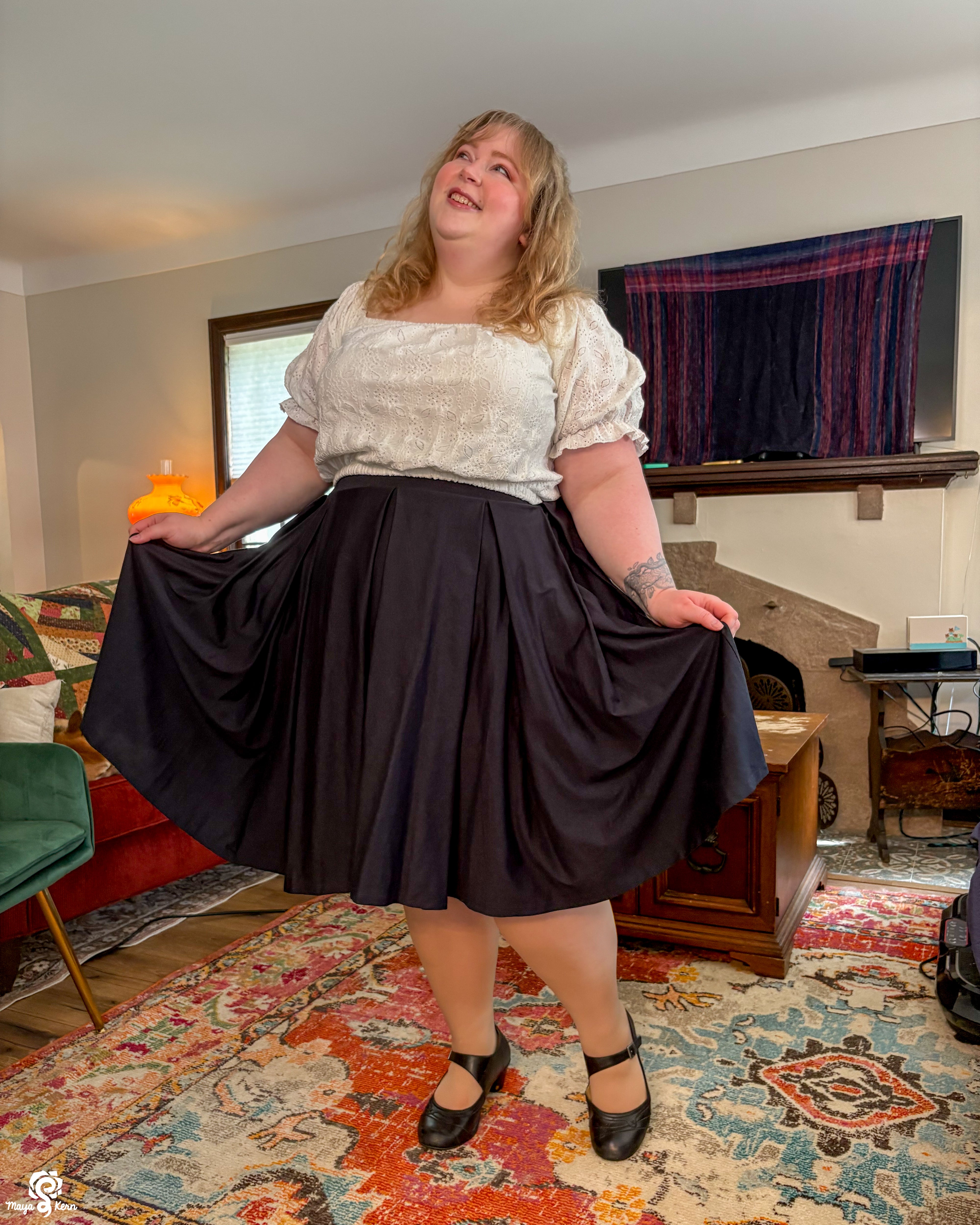 Maya is wearing the skirt in size 2XL